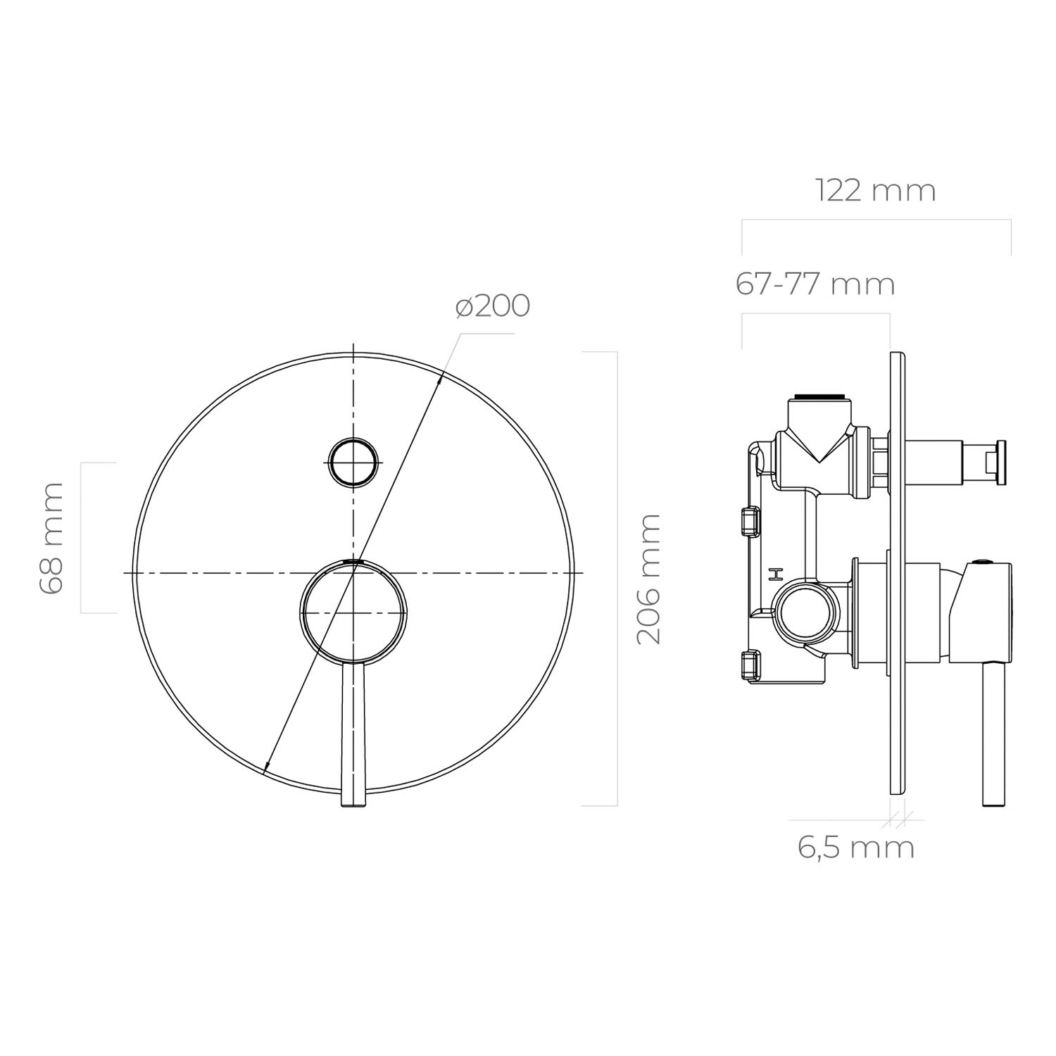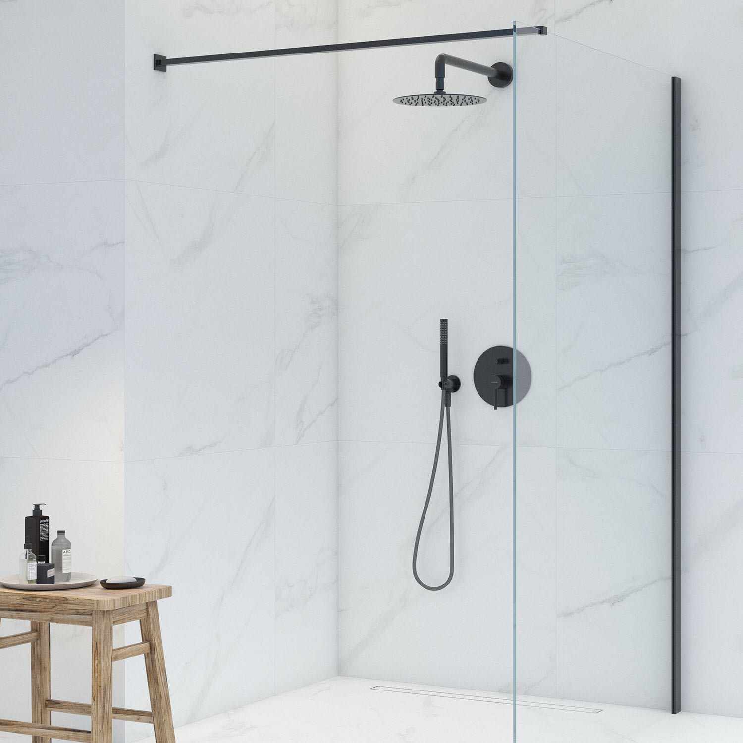 - Anschluss für Regendusche oder ¾-Zoll-Wannenauslauf