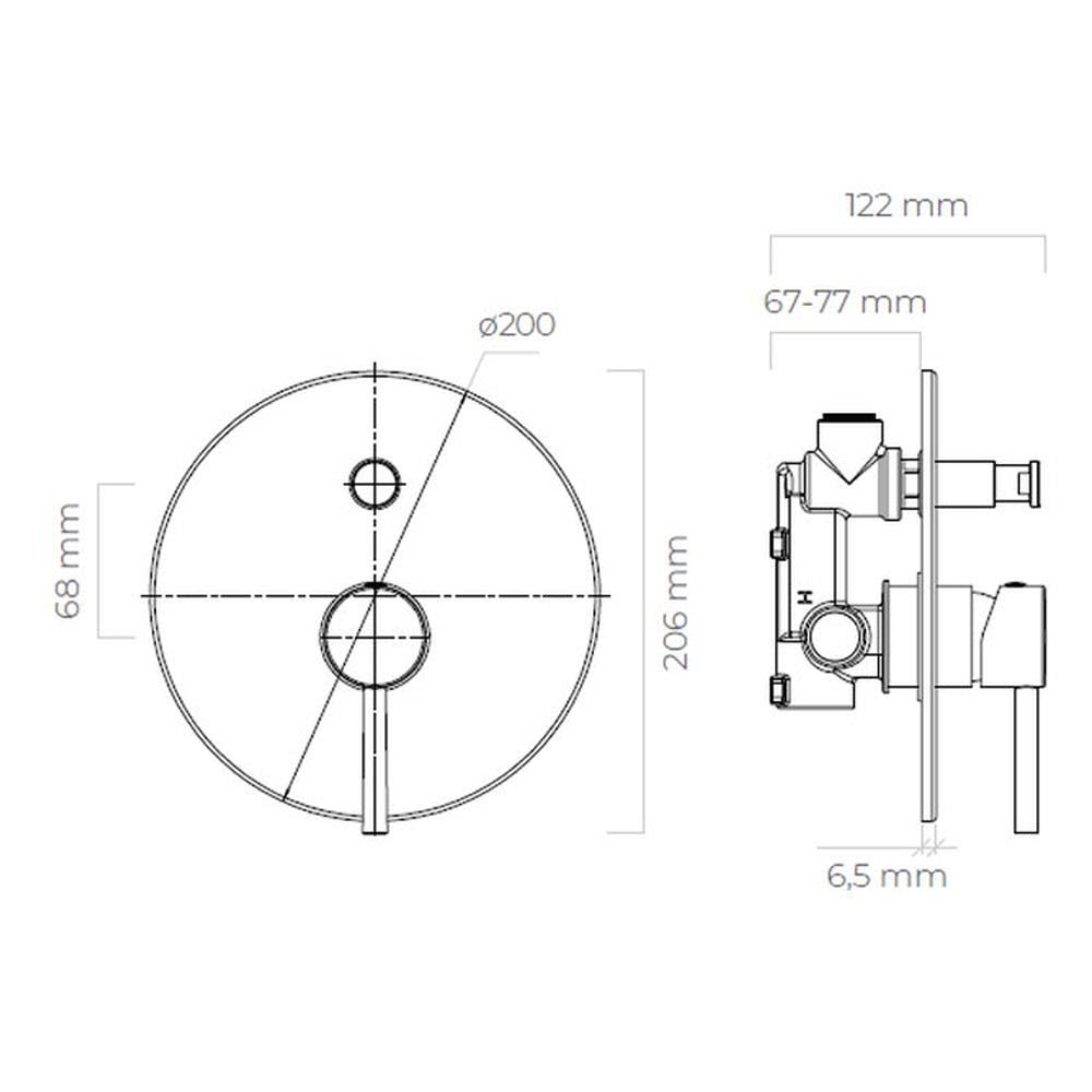 - Anschluss für Regendusche oder ¾-Zoll-Wannenauslauf