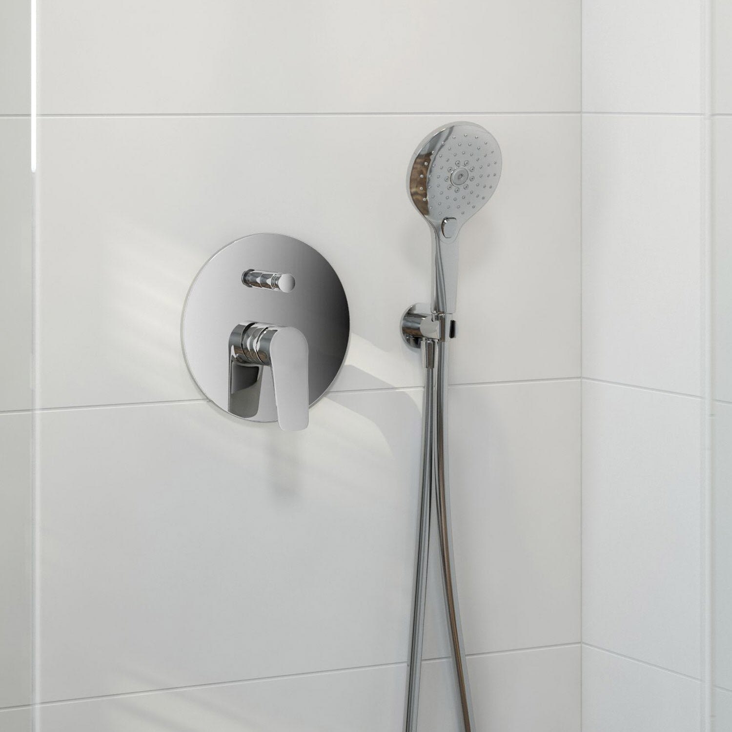 - Anschluss für Regendusche oder ¾-Zoll-Wannenauslauf