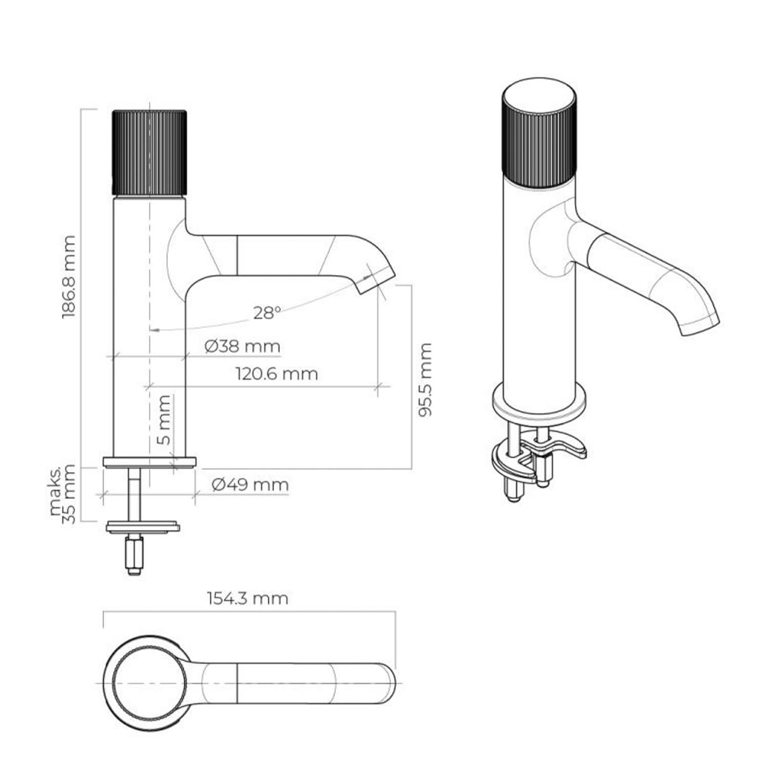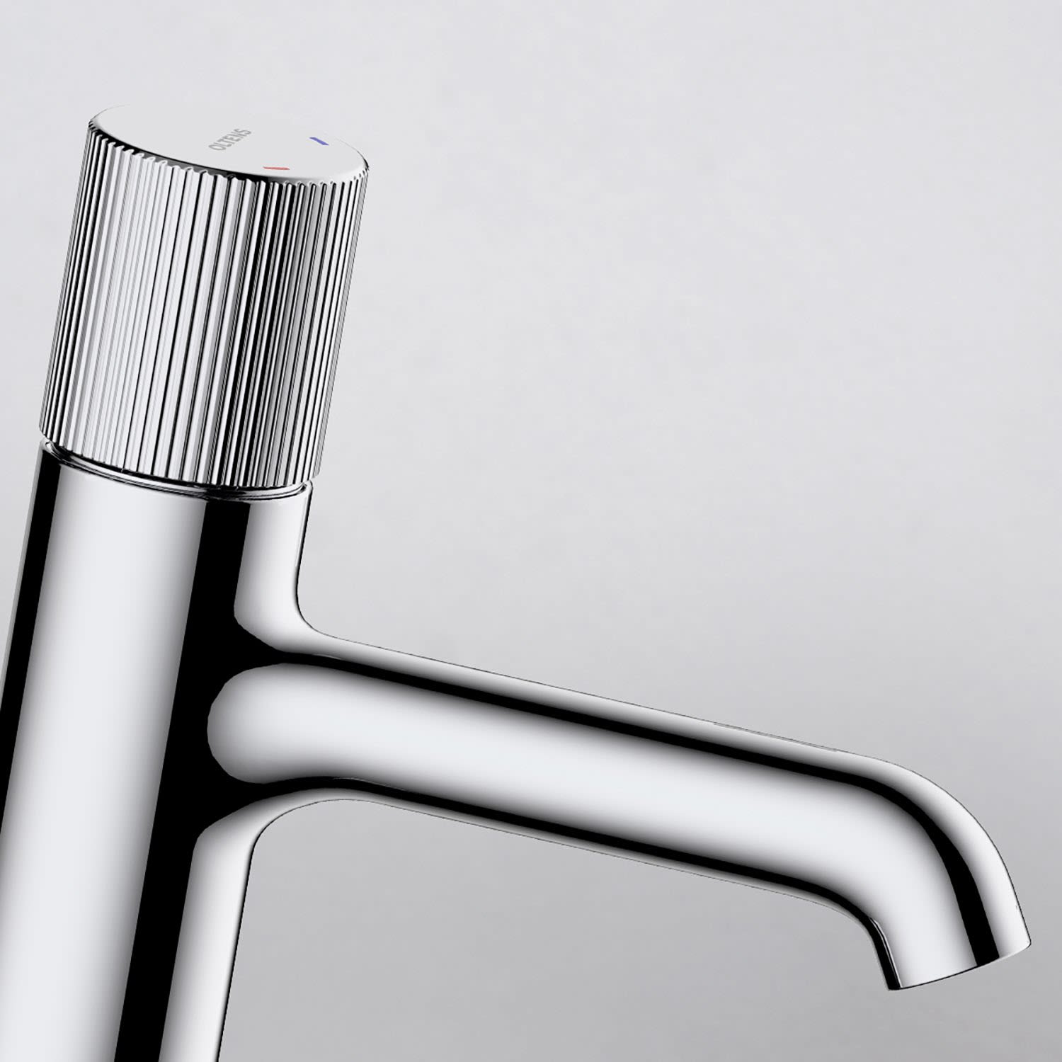 Zu den charakteristischen Merkmalen der Oltens Hamnes Armatur gehören ein gravierter Knopf, der gleichzeitig als Griff dient, ein langlebiger Keramikkopf und eine ungewöhnlich passende Farbe. Die Gesamtheit ist ein außergewöhnliches Beispiel für minimalistische Eleganz.
