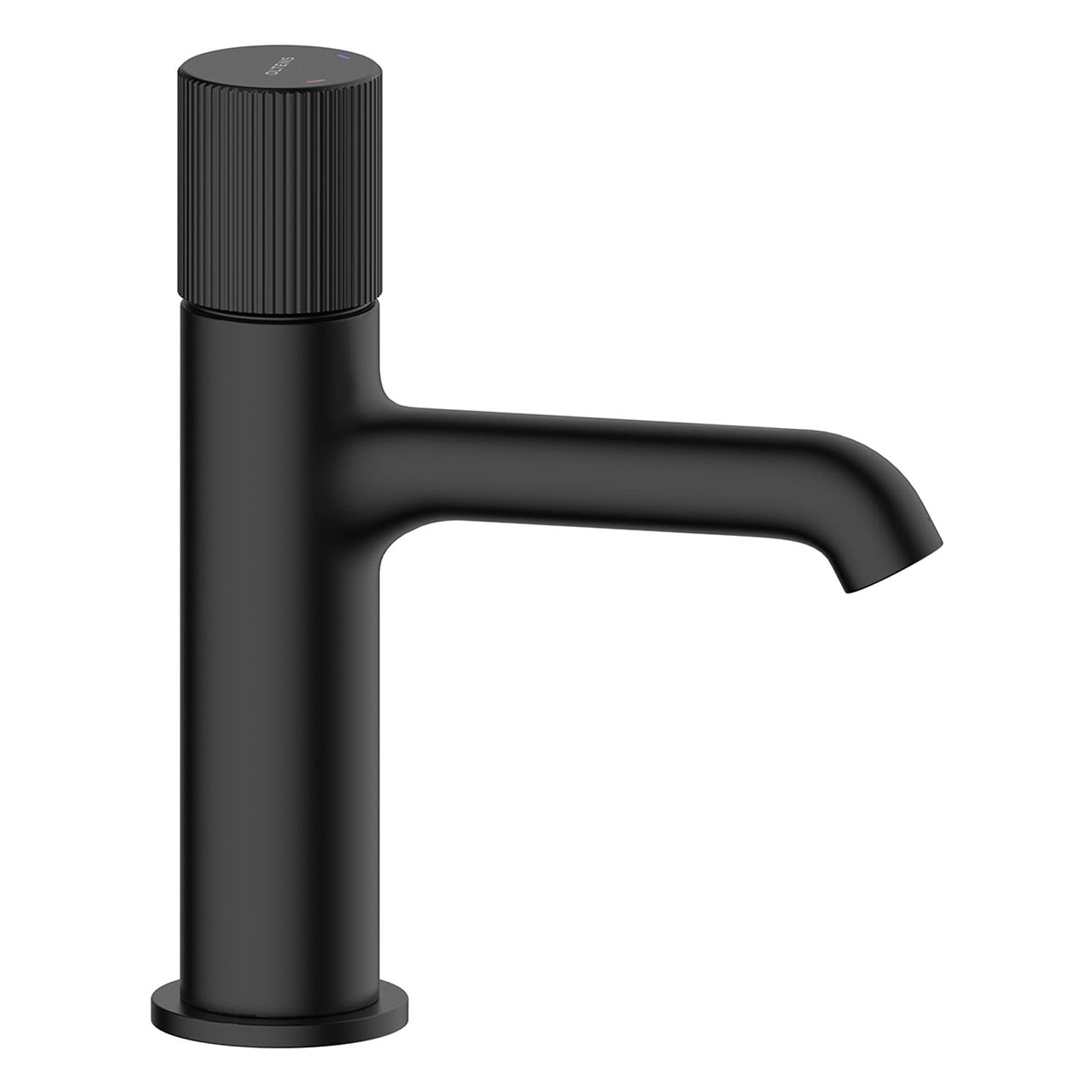 Zu den charakteristischen Merkmalen der Oltens Hamnes Armatur gehören ein gravierter Knopf, der gleichzeitig als Griff dient, ein langlebiger Keramikkopf und eine ungewöhnlich passende Farbe. Die Gesamtheit ist ein außergewöhnliches Beispiel für minimalistische Eleganz.