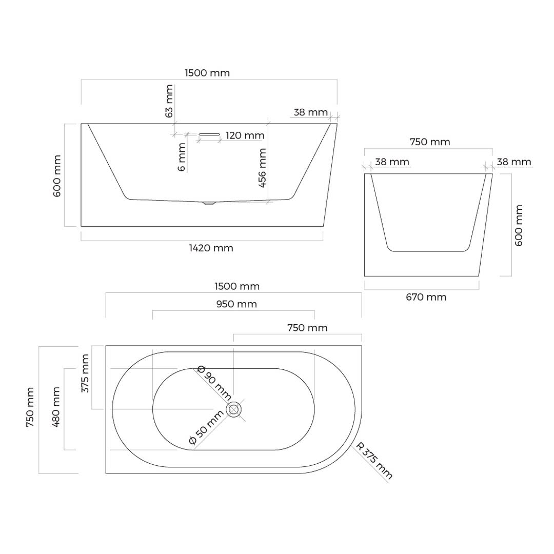 OLTENS Delva Vorwand-Badewanne 150 x 75 cm für Eckeinbau rechts