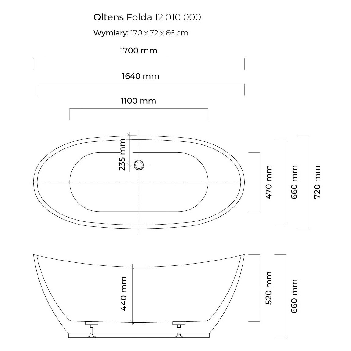 OLTENS Folda freistehende Badewanne oval 170 x 72 cm