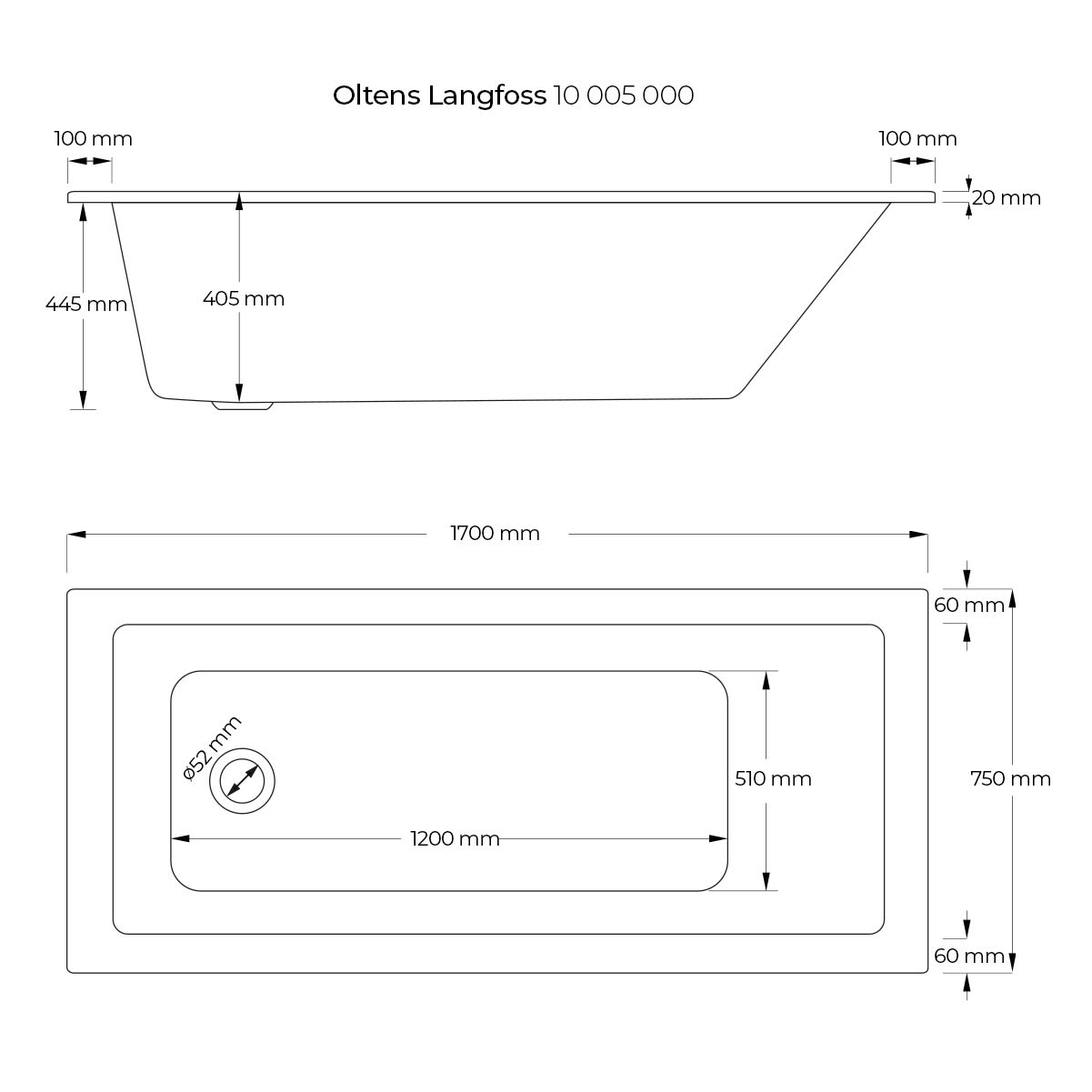 OLTENS Langfoss Einbau-Badewanne 170 x 75 cm