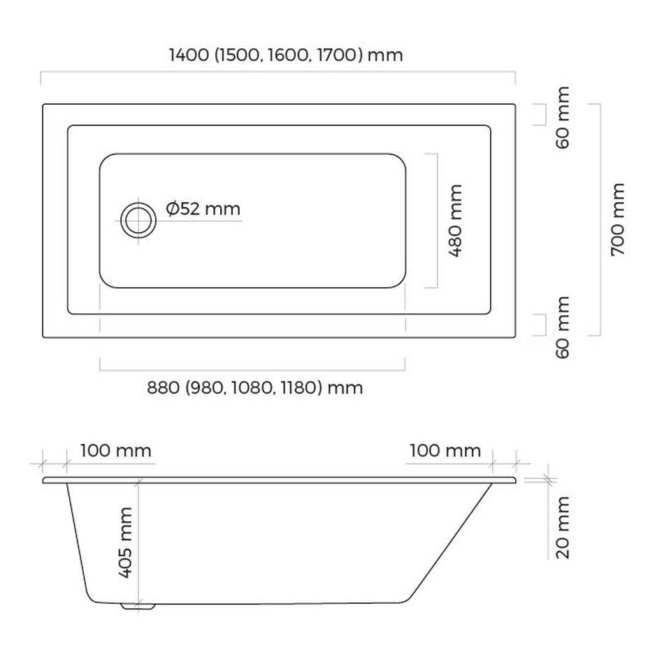 OLTENS Langfoss Einbau-Badewanne 150 x 70 cm