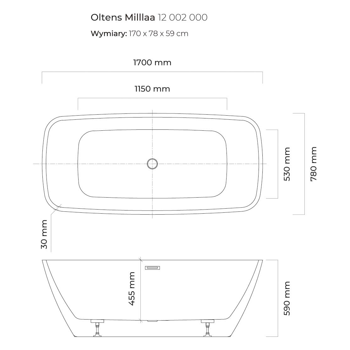 OLTENS Millaa freistehende Badewanne oval 170 x 78 cm