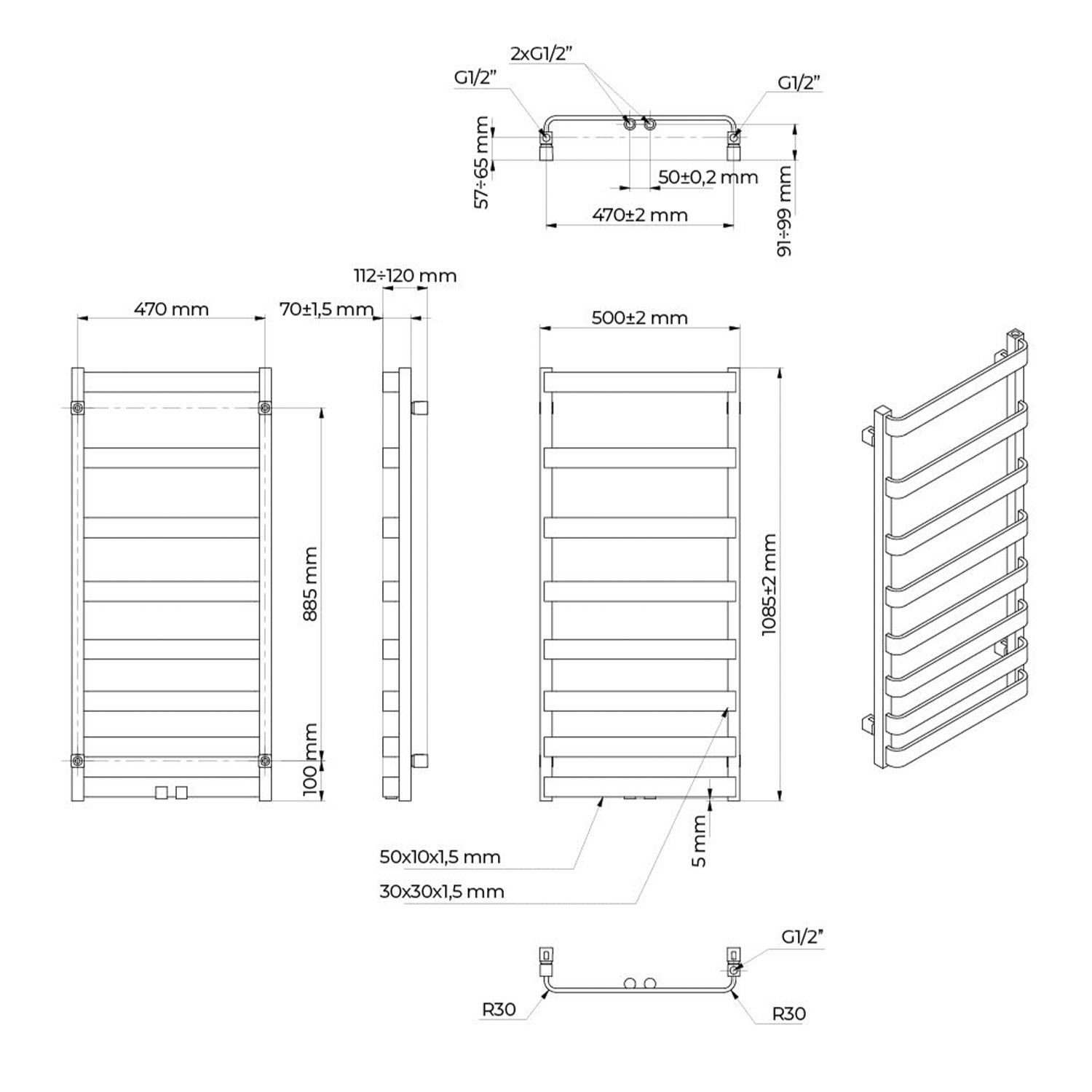 Das Leiterdesign des Heizgeräts ermöglicht es Ihnen, Ihre Badetücher und Garderobe bequem zu trocknen. Die Anzahl der Lamellen hängt von der Höhe des Heizkörpers ab, so dass jeder das ideale Modell für sich selbst wählen kann. Das einzigartige Design des Produkts unterstreicht den Charakter der Einrichtung, in der es verwendet werden soll.