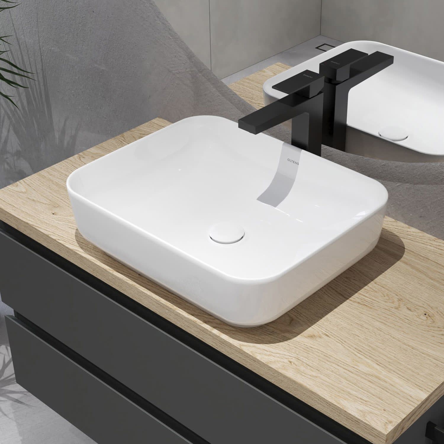 OLTENS Hadsel Aufsatzwaschbecken rechteckig 50 x 40 cm, mit SmartClean