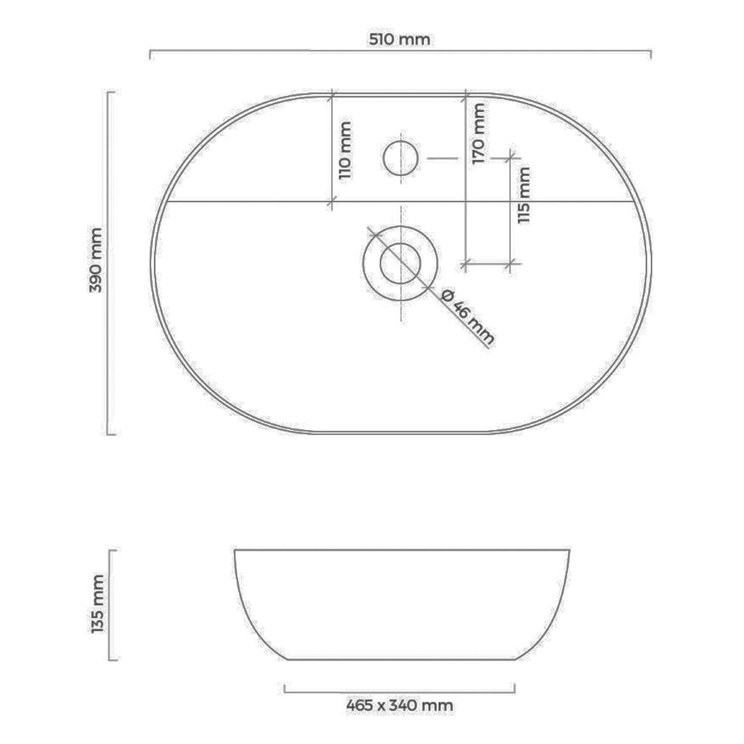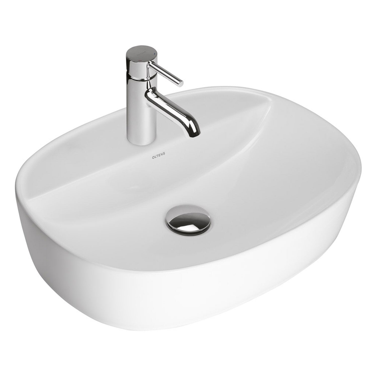 OLTENS Hamnes Thin Aufsatzwaschbecken oval 51 x 39 cm, mit Hahnloch