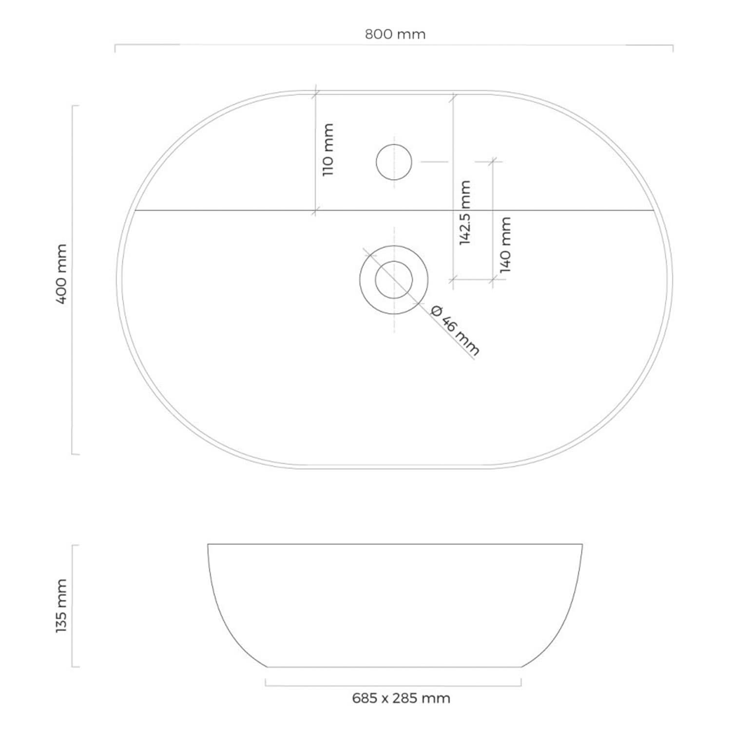 OLTENS Hamnes Thin Aufsatzwaschbecken oval 80 x 40 cm, mit Hahnloch