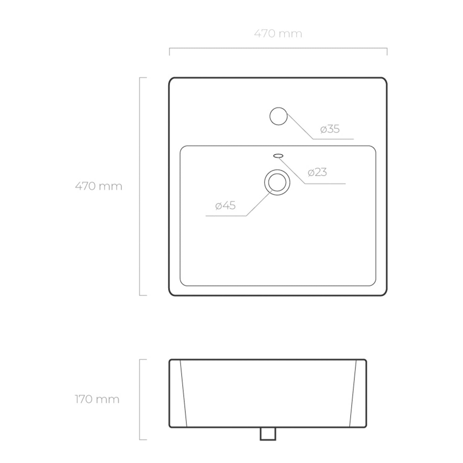 OLTENS Hyls Aufsatzwaschbecken quadratisch 47 x 47 cm, mit Hahnloch