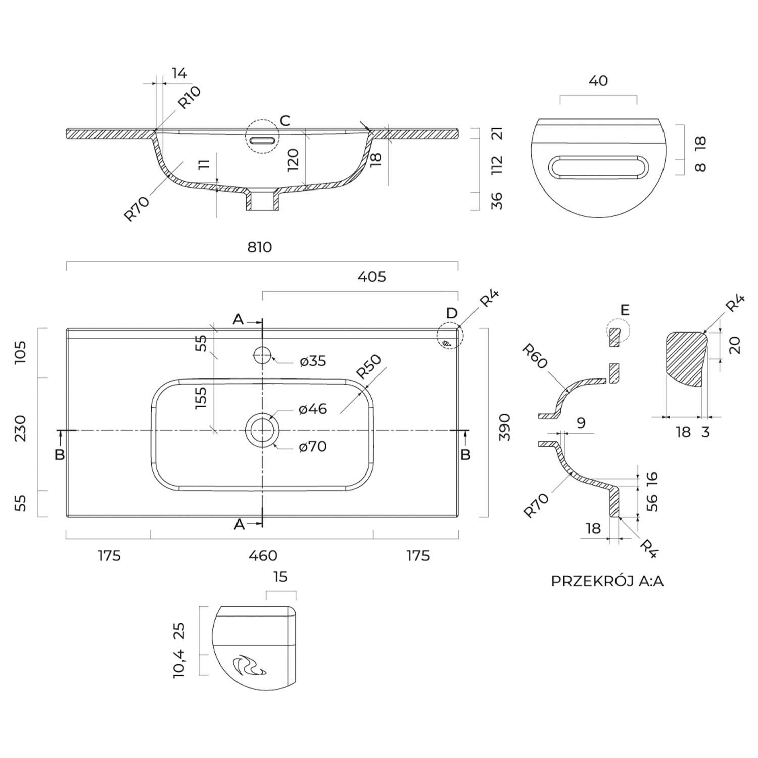 - mit 1 Hahnloch, Ø 3,5 cm