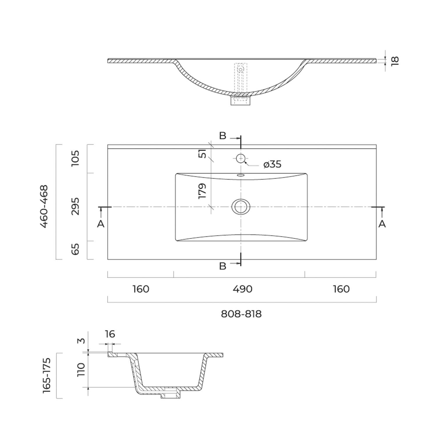 - mit 1 Hahnloch, Ø 3,5 cm