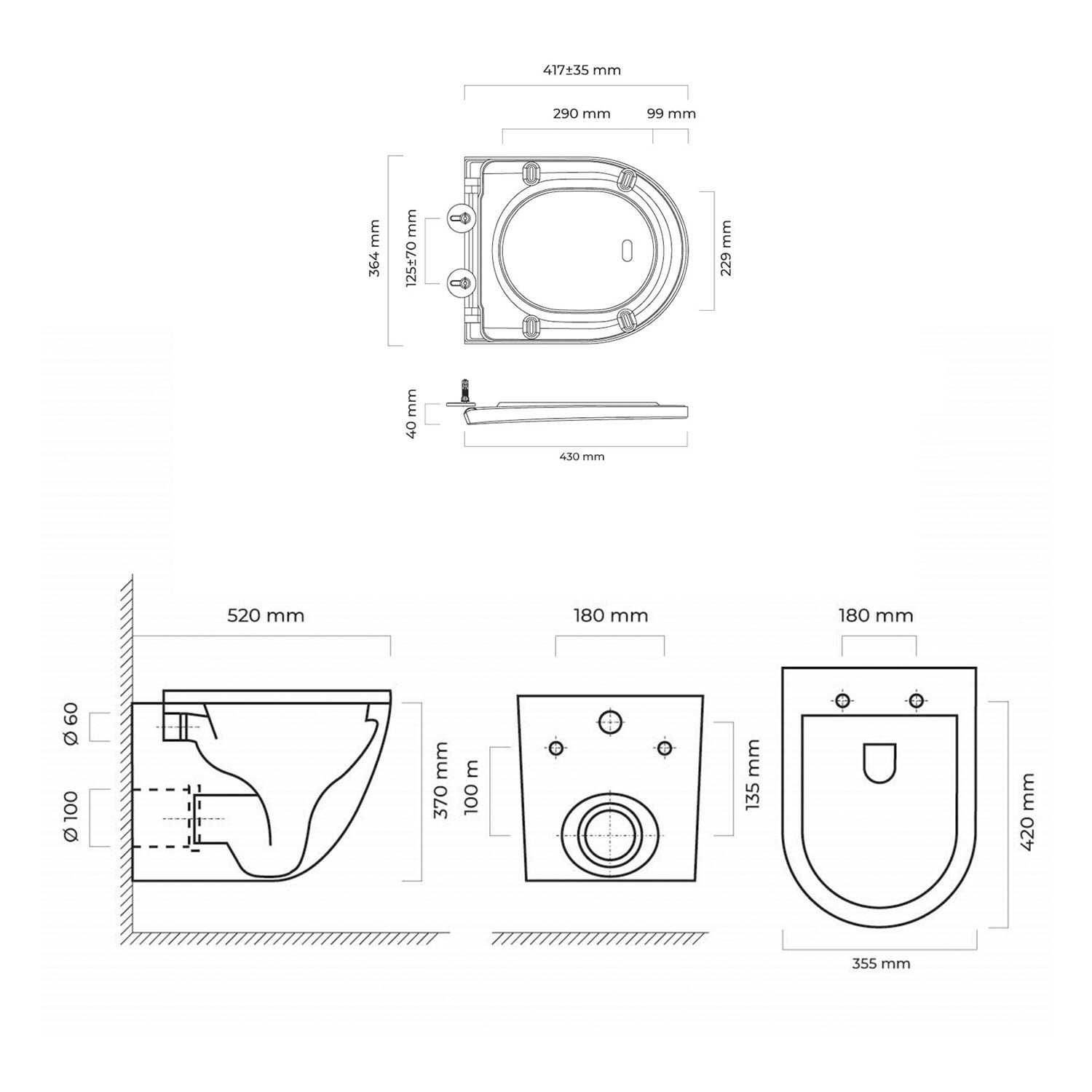 - mit WC-Sitz in SoftClose Ausführung: Absenkautomatik, die das unangenehme Knallen des WC-Sitzes verhindert