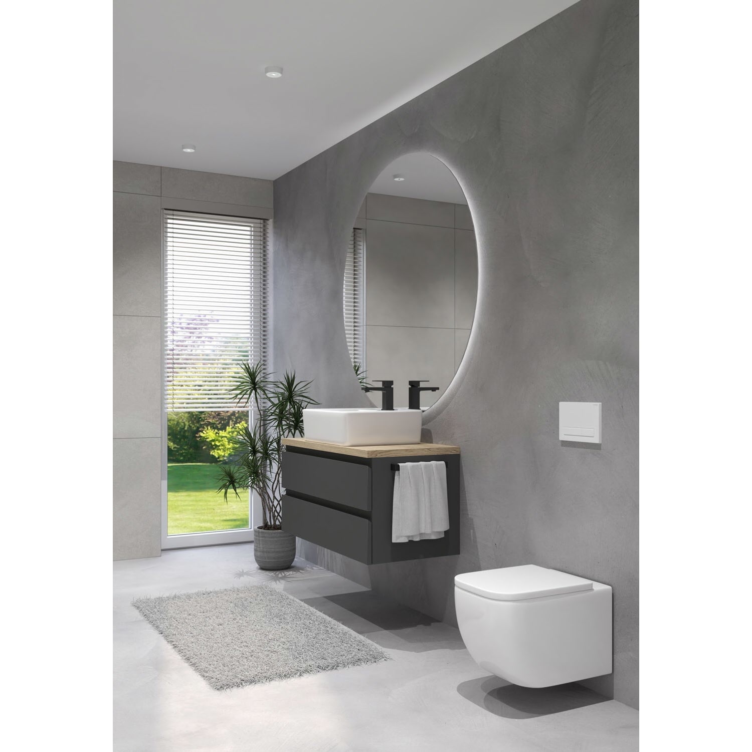 - mit Slim WC-Sitz in SoftClose Ausführung: Absenkautomatik, die das unangenehme Knallen des WC-Sitzes verhindert