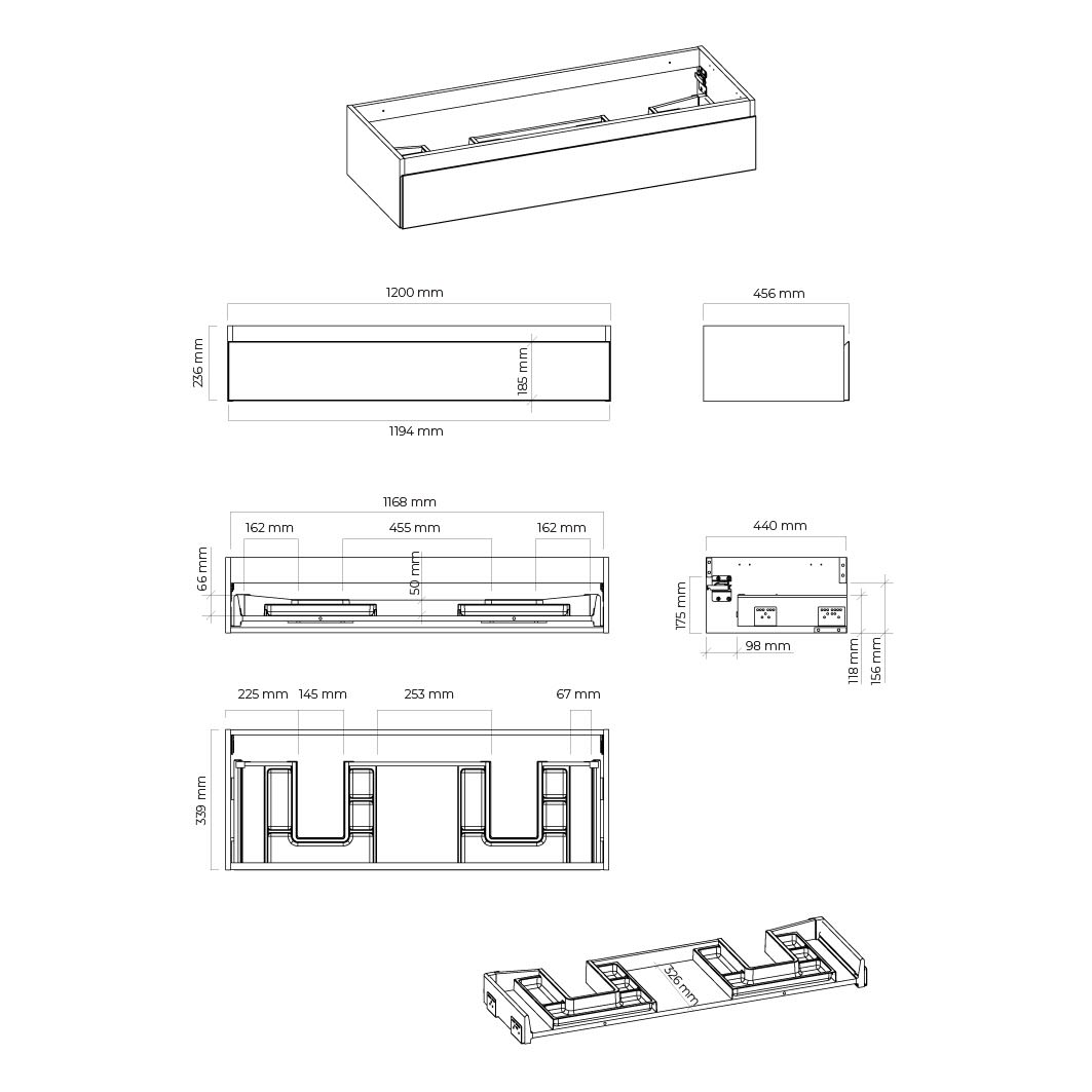 - Abmessungen: B: 120 x T: 45,6 x H: 23,6 cm