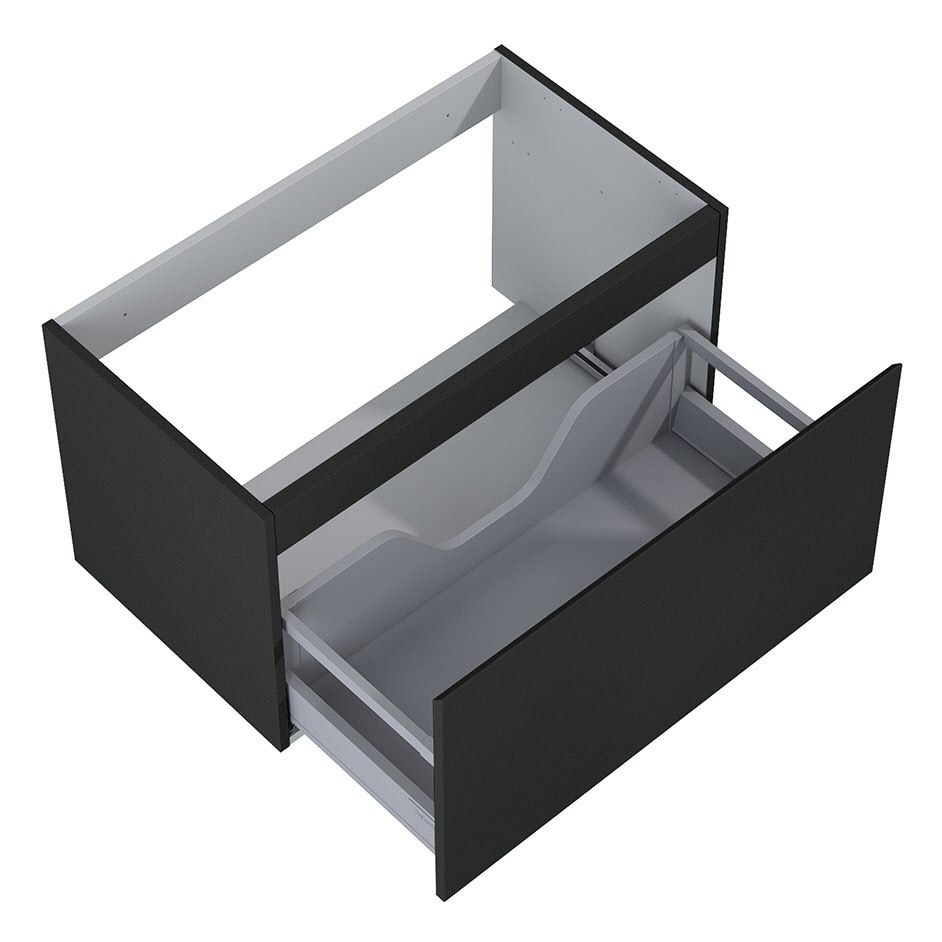 - Foilie in 3D-Vakuum-Press-Technik aufgebracht (keine Fugen in der gesamten Waschbeckenplatte, was Beständigkeit gegen Feuchtigkeit garantiert)