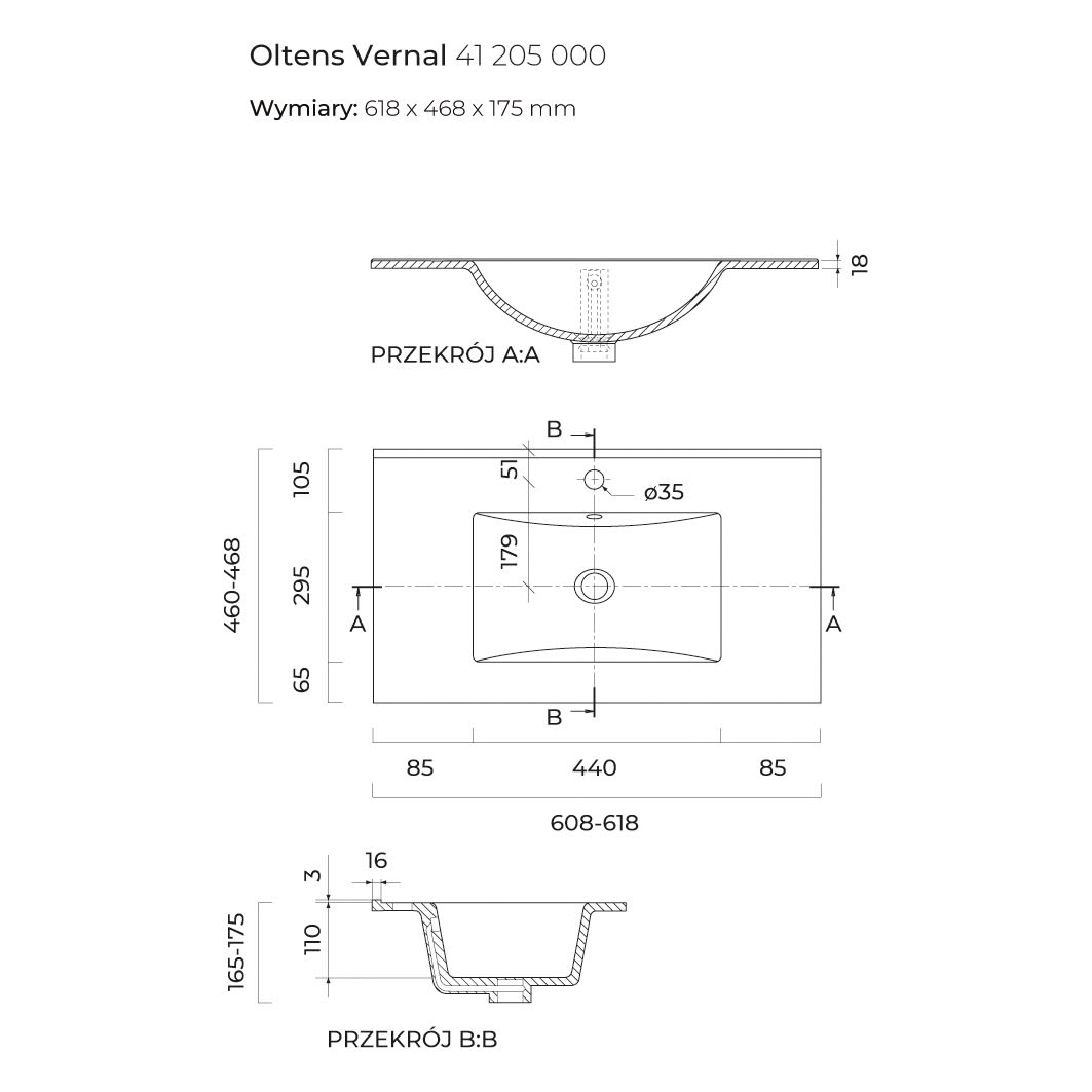 OLTENS Vernal Waschtischunterschrank mit Waschbecken 61 x 25,4 cm, mit 1 Schublade
