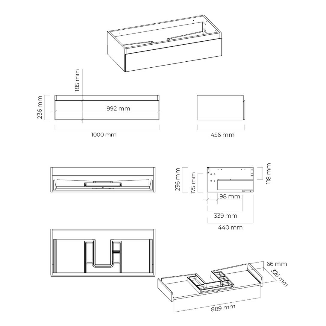 - Abmessungen: B: 100 x T: 45,6 x H: 23,6 cm