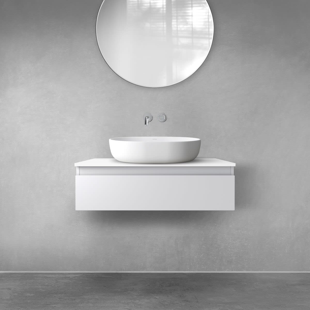 Zu kombinieren mit einer gleich-/andersfarbigen Konsolenplatte (zzgl. Aufsatzwaschtisch) oder dem Vernal Möbelwaschbecken.