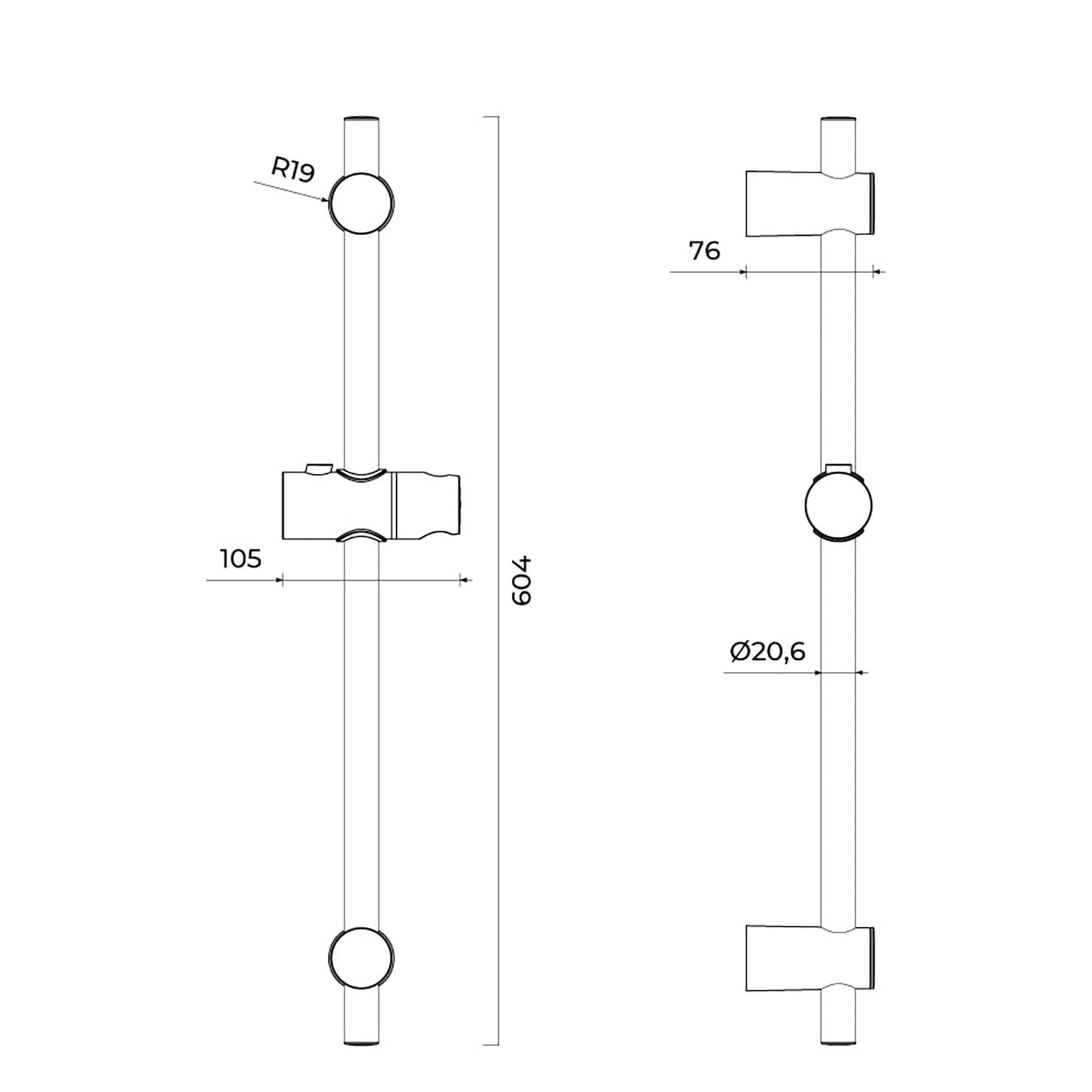 - Stange mit vertikal verstellbarem Schieber