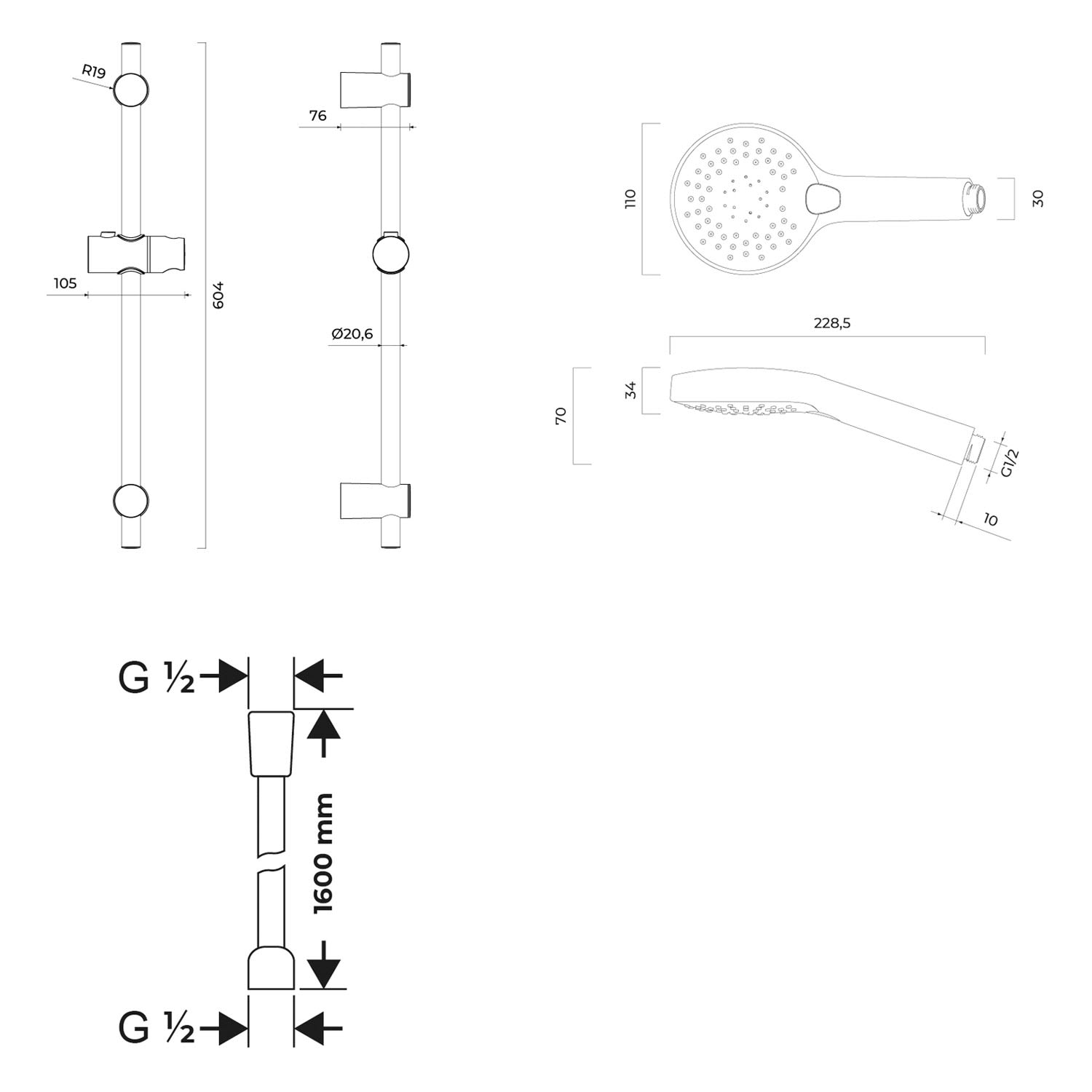 OLTENS Duschgarnitur Driva EasyClick Alling 60 mit Handbrause rund Ø 11 cm und Brausestange