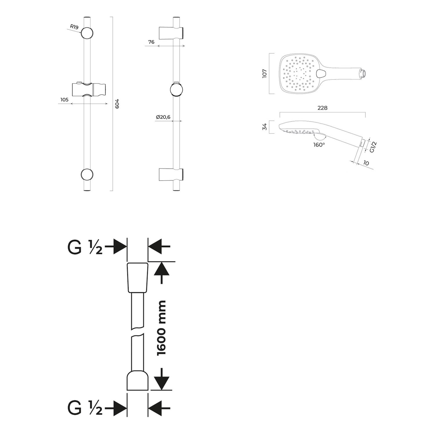 OLTENS Duschgarnitur Driva EasyClick (S) Alling 60 mit Handbrause eckig und Brausestange