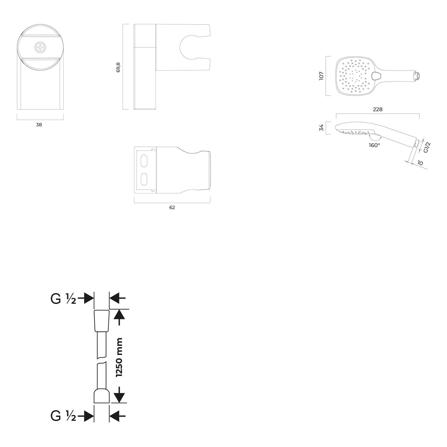 Handbrause rechteckig, mit Brausehalter