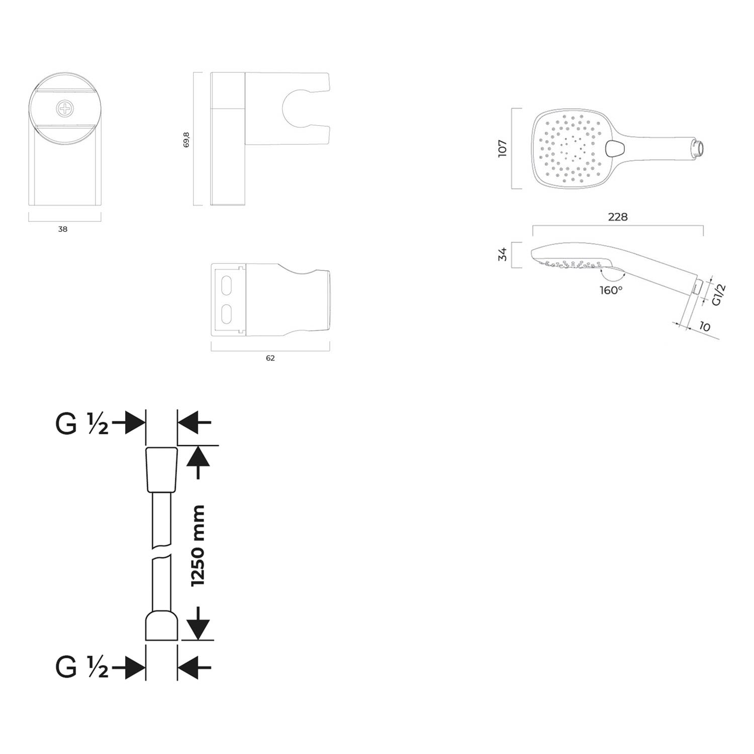 OLTENS Duschgarnitur Driva EasyClick (S) Gide mit Handbrause eckig und Brausehalter