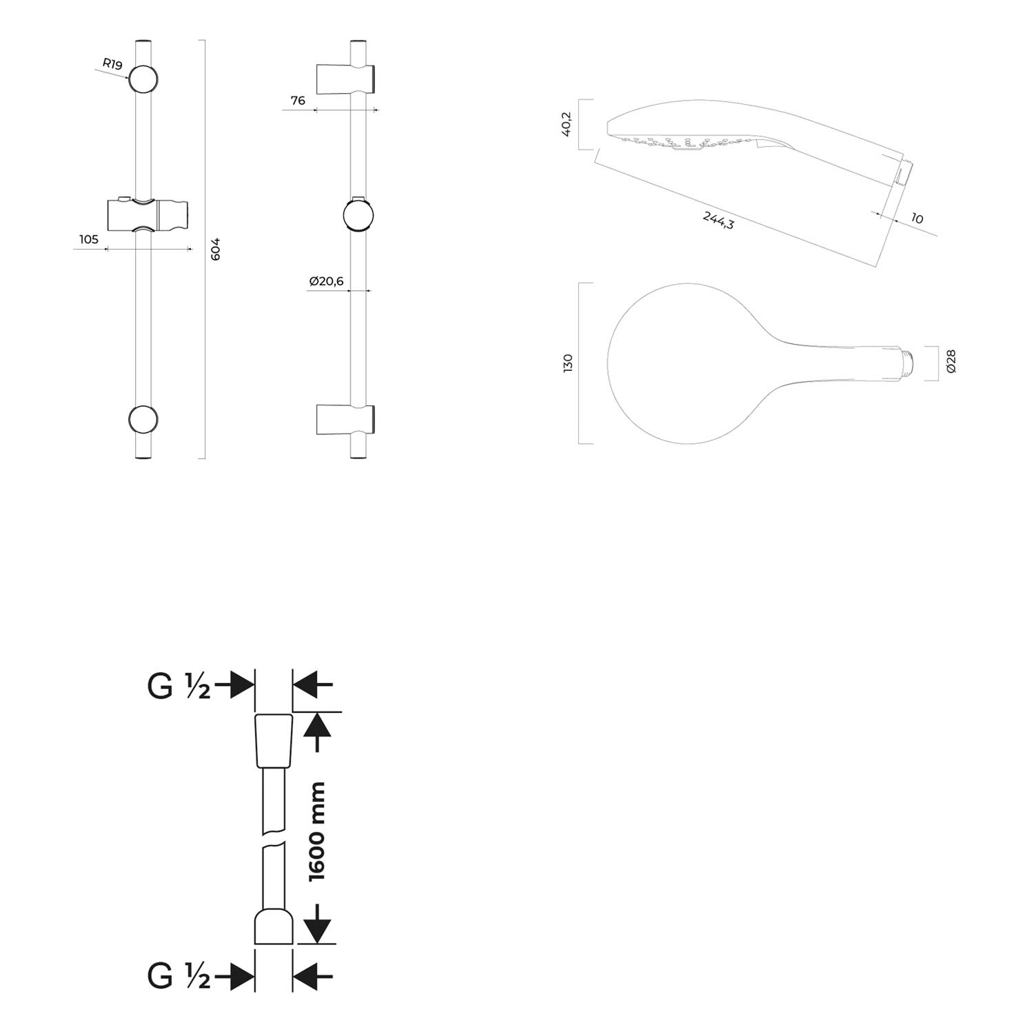 OLTENS Duschgarnitur Saxan EasyClick Alling 60 mit Handbrause rund Ø 13 cm und Brausestange