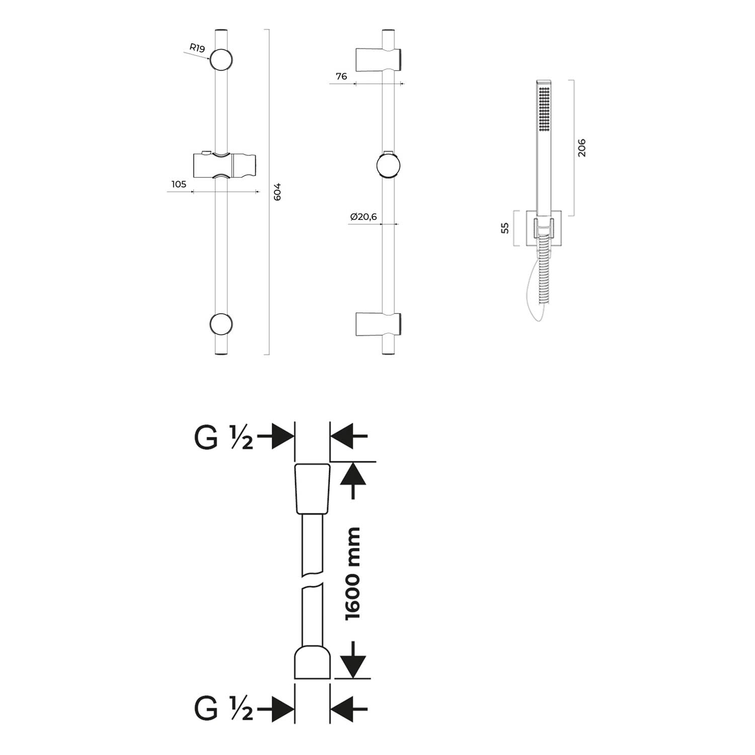 OLTENS Duschgarnitur Sog Alling 60 mit Stabhandbrause quadratisch und Brausestange