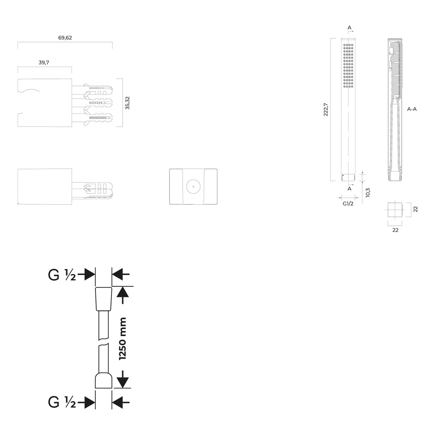 OLTENS Duschgarnitur Sog Gide (S) mit Stabhandbrause quadratisch und Brausehalter