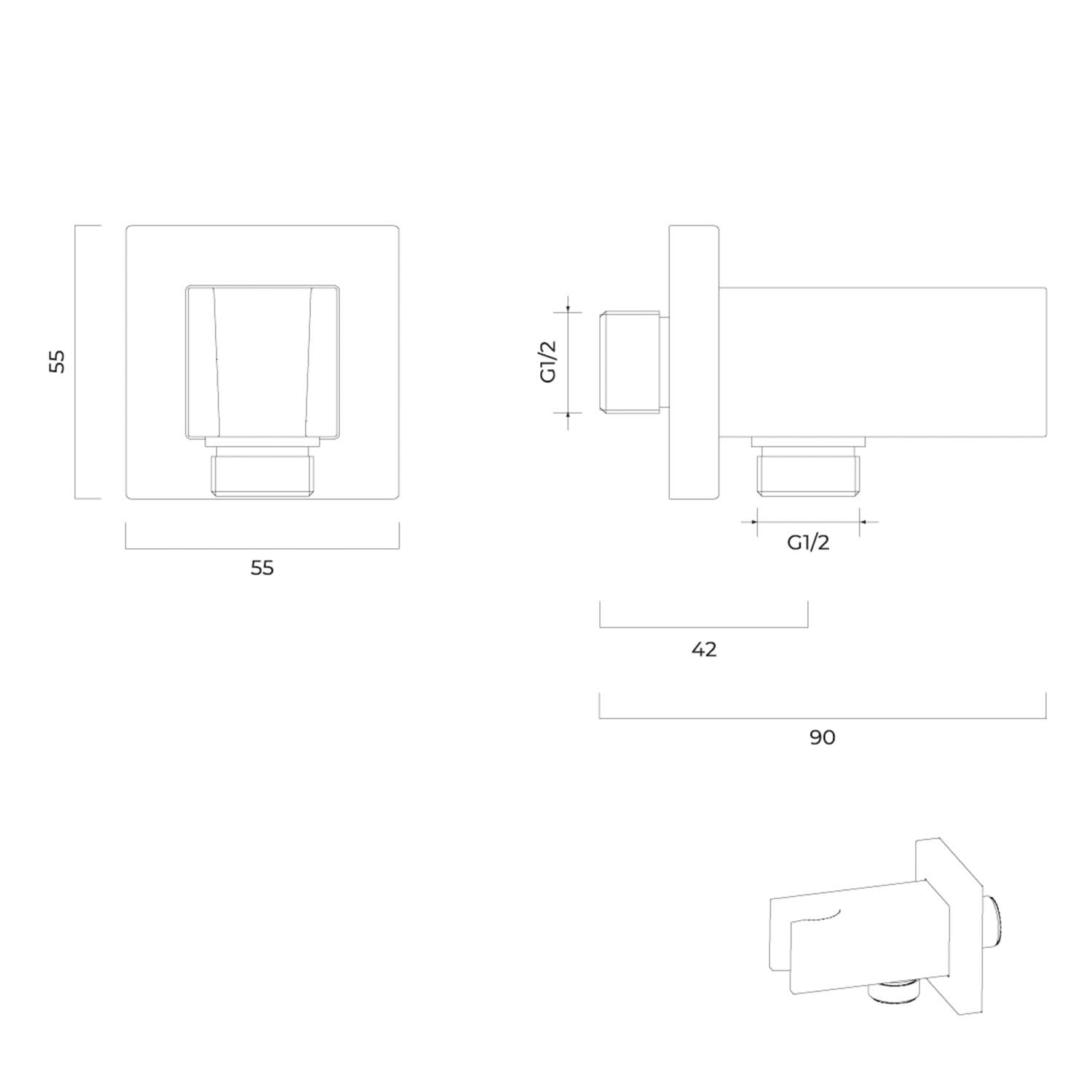 OLTENS Hvita (S) Wandanschlussbogen mit Brausehalter, Rosette quadratisch