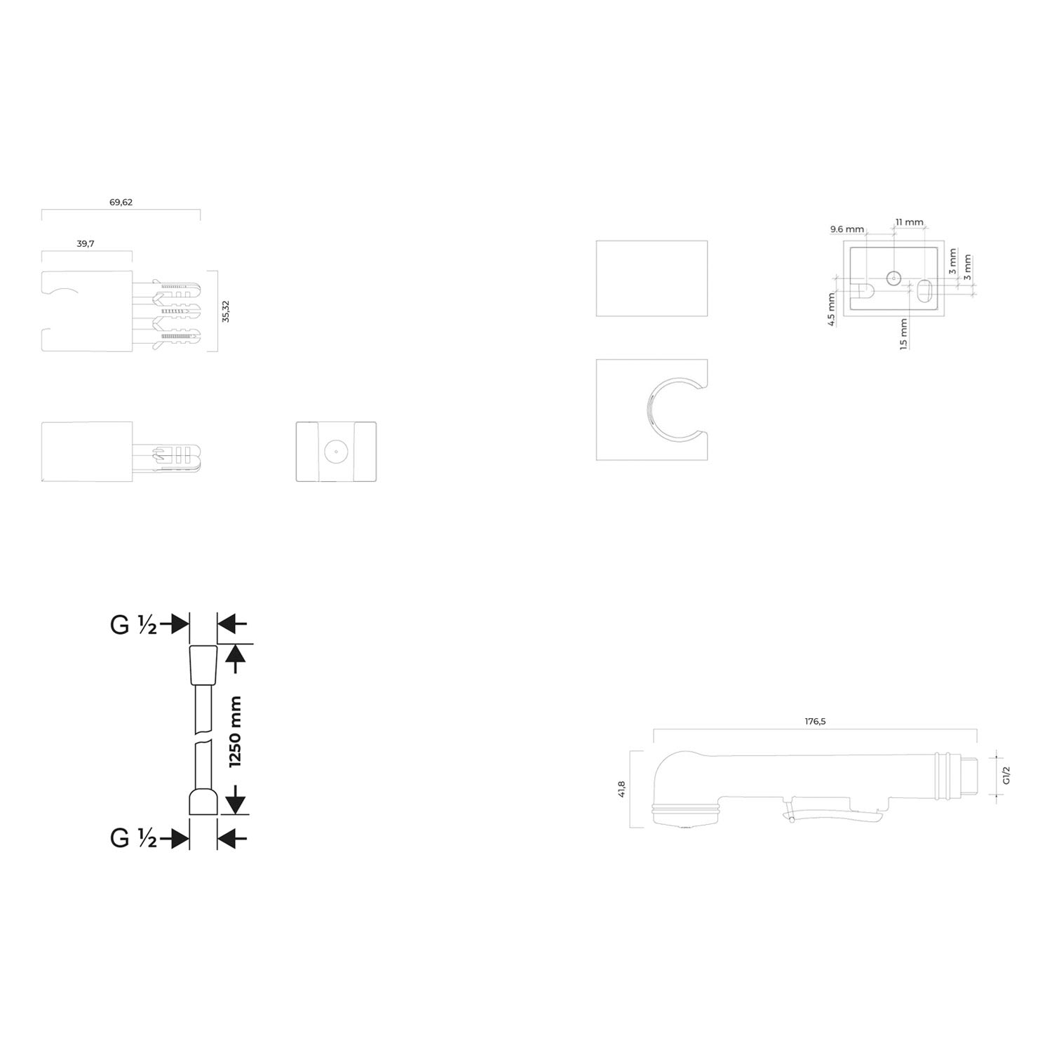 Brausehalter eckig