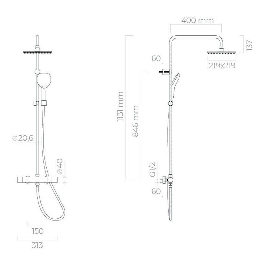 OLTENS Atran (S) Duschsystem mit Aufputz-Thermostat, Handbrause und Kopfbrause eckig