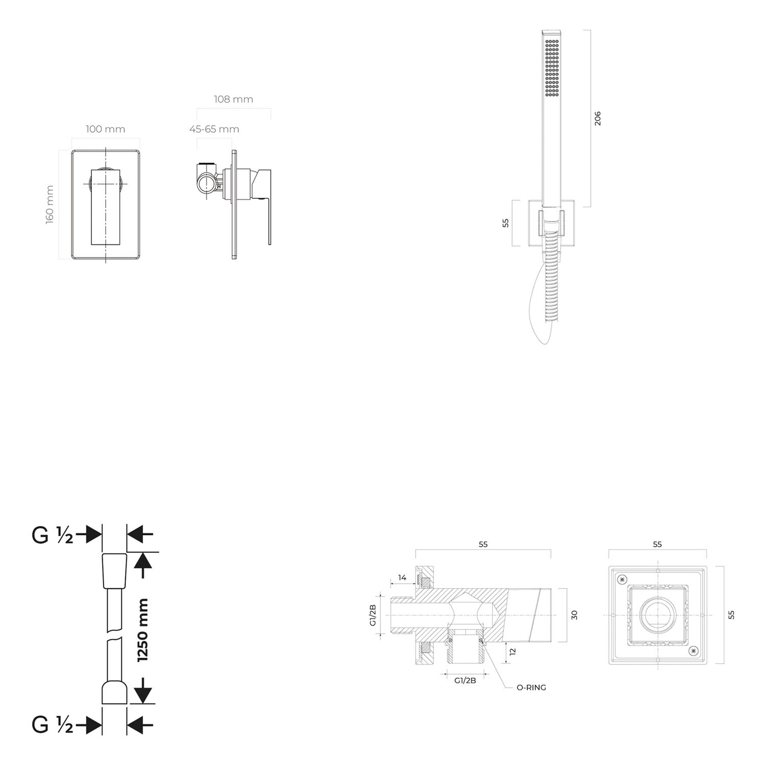 OLTENS Gota Duschsystem mit Unterputz-Armatur und Stabhandbrause eckig