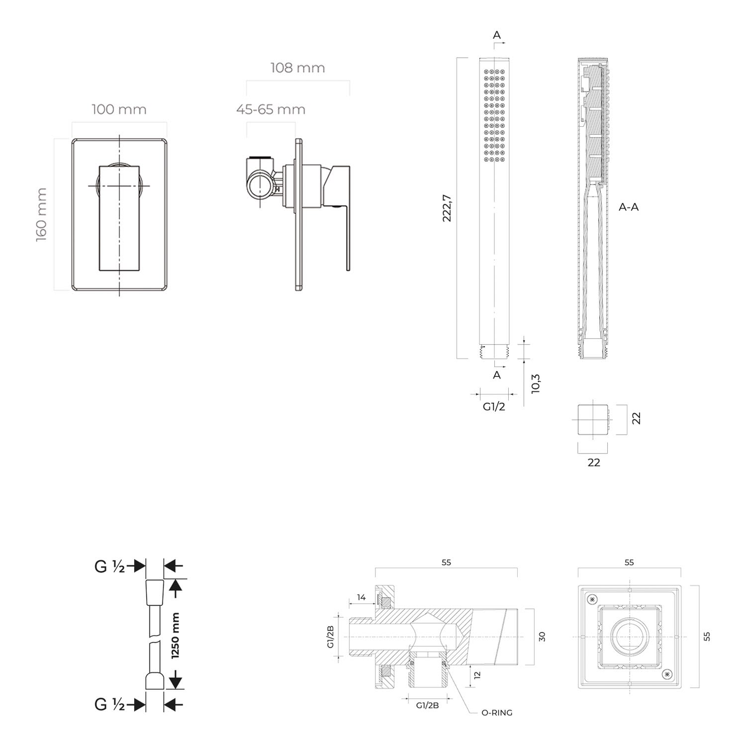OLTENS Gota Duschsystem mit Unterputz-Armatur und Stabhandbrause eckig