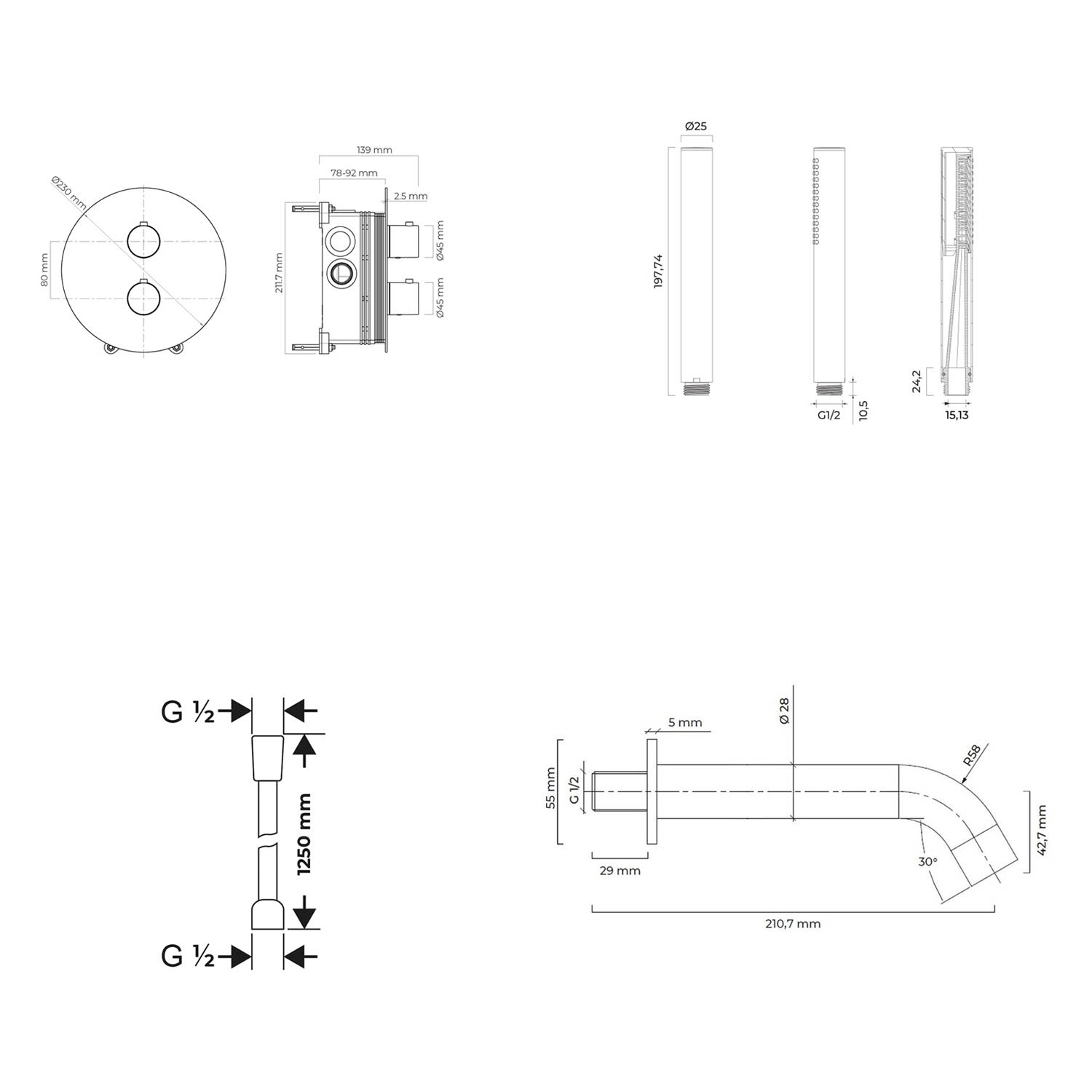 OLTENS Katla Duschsystem mit Unterputz-Thermostat-Armatur, Stabhandbrause und Wanneneinlauf