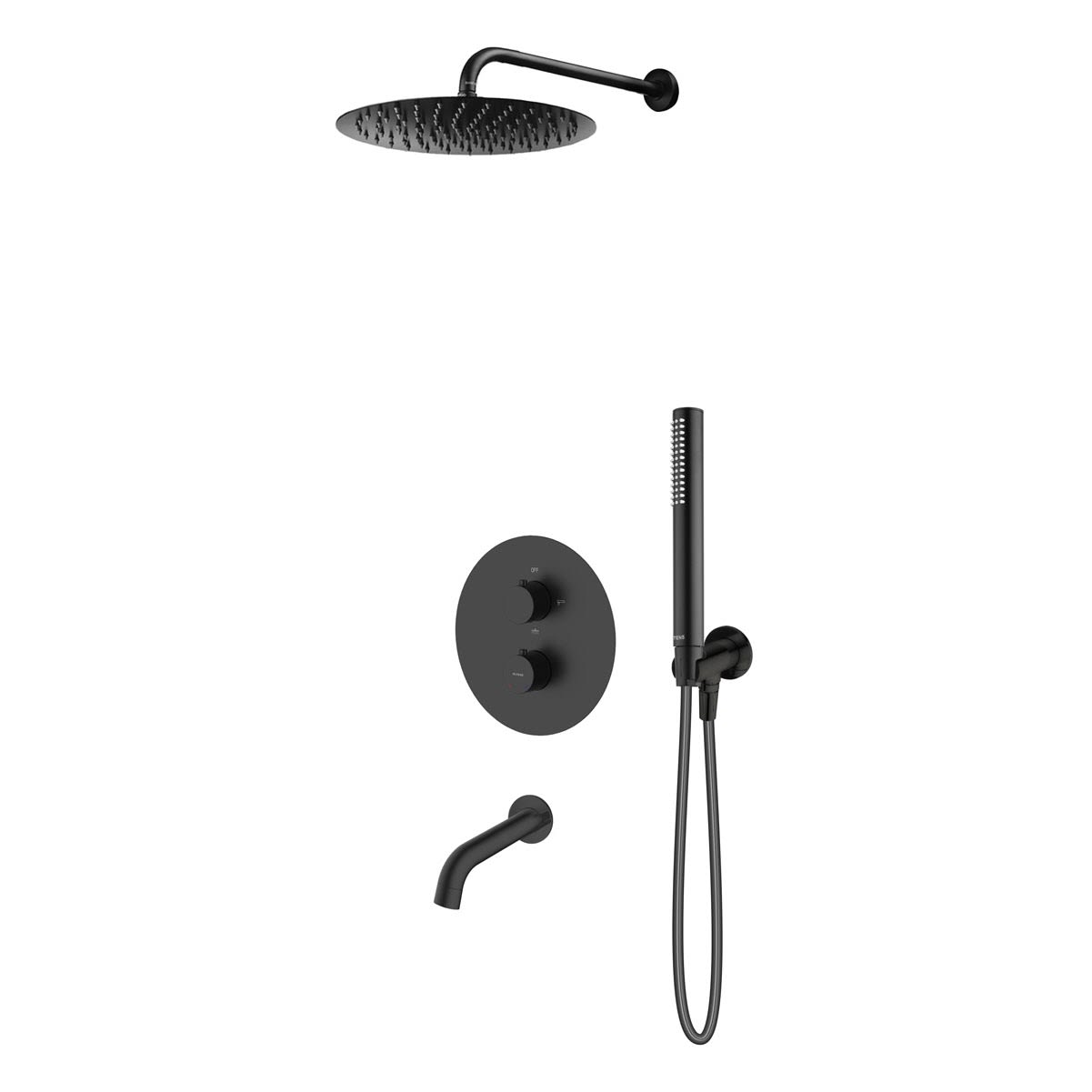 OLTENS Katla Duschsystem mit Unterputz-Thermostat-Armatur, Stabhandbrause, Kopfbrause rund und Wanneneinlauf