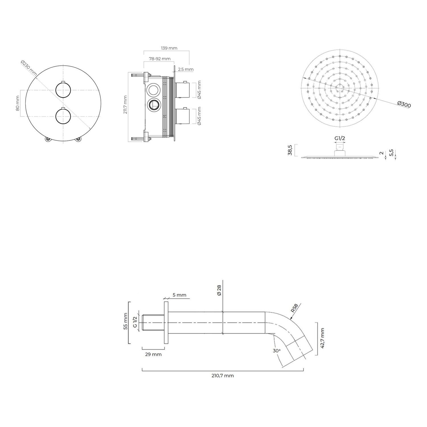 - Kopfbrause mit 1 Strahlart, Ø 30 cm, aus Edelstahl