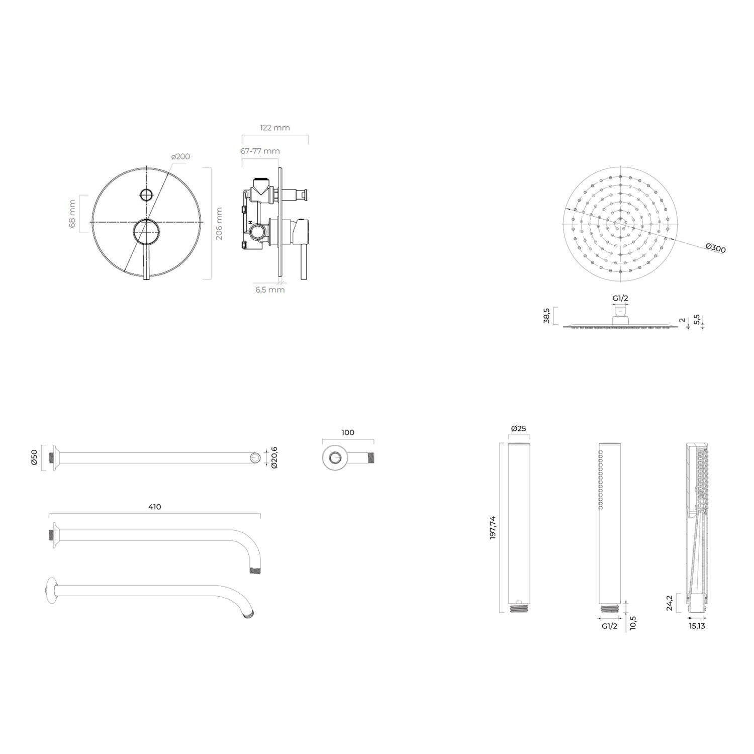 - Anschluss für Regendusche oder ¾-Zoll-Wannenauslauf