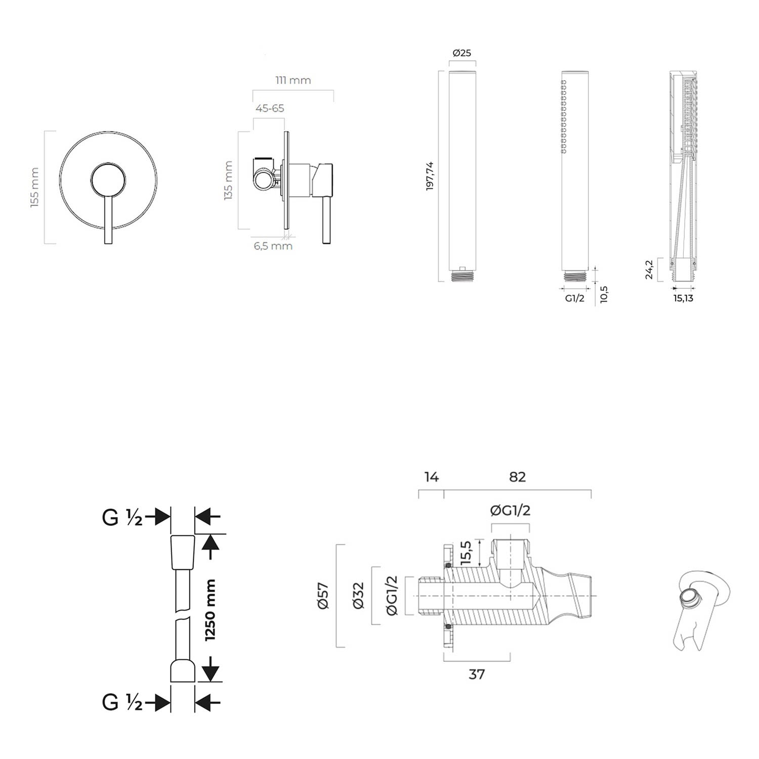 - inkl. Winkelanschluss mit integriertem Brausehalter aus Messing