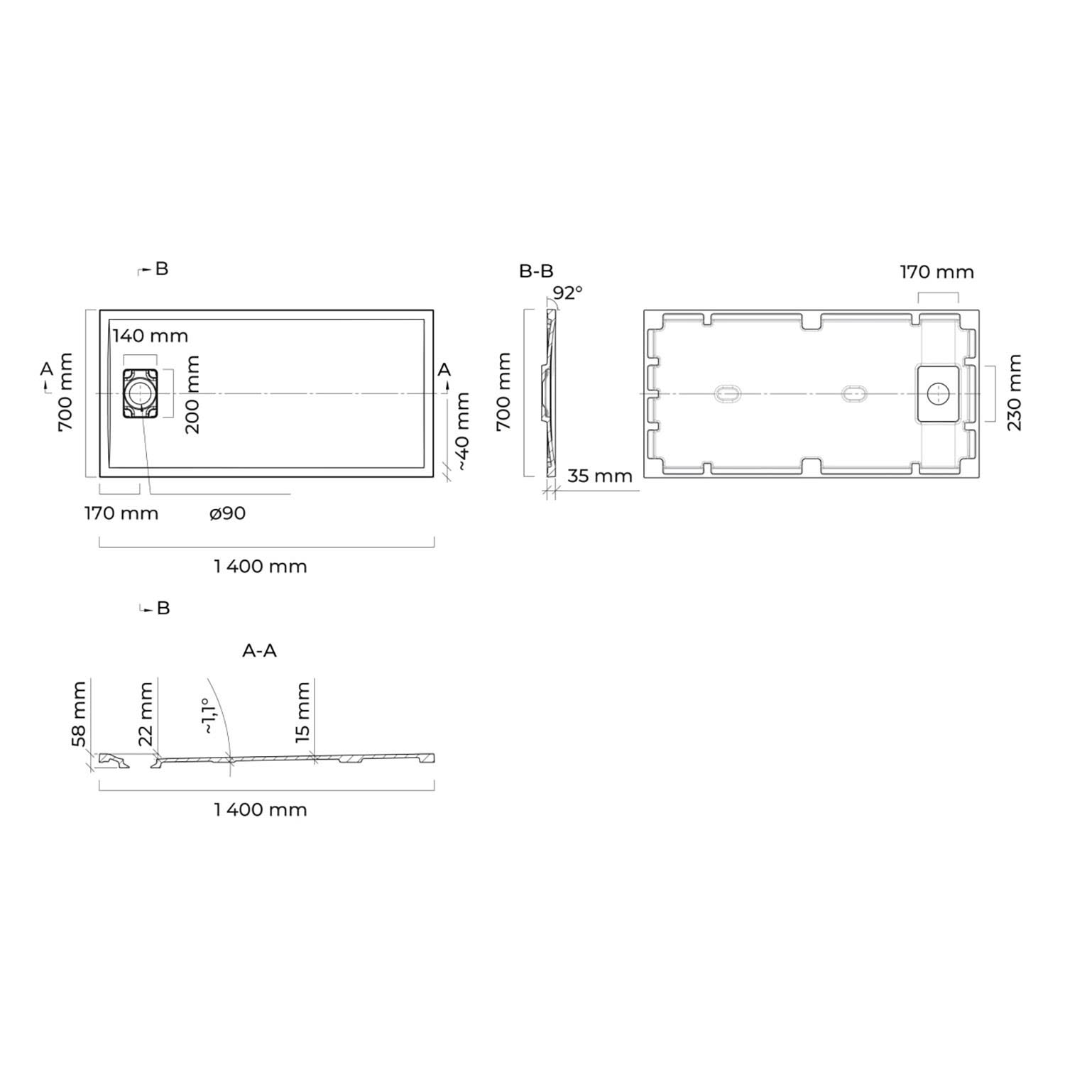 - inkl. Abdeckung des Abflusses, 20 x14 cm