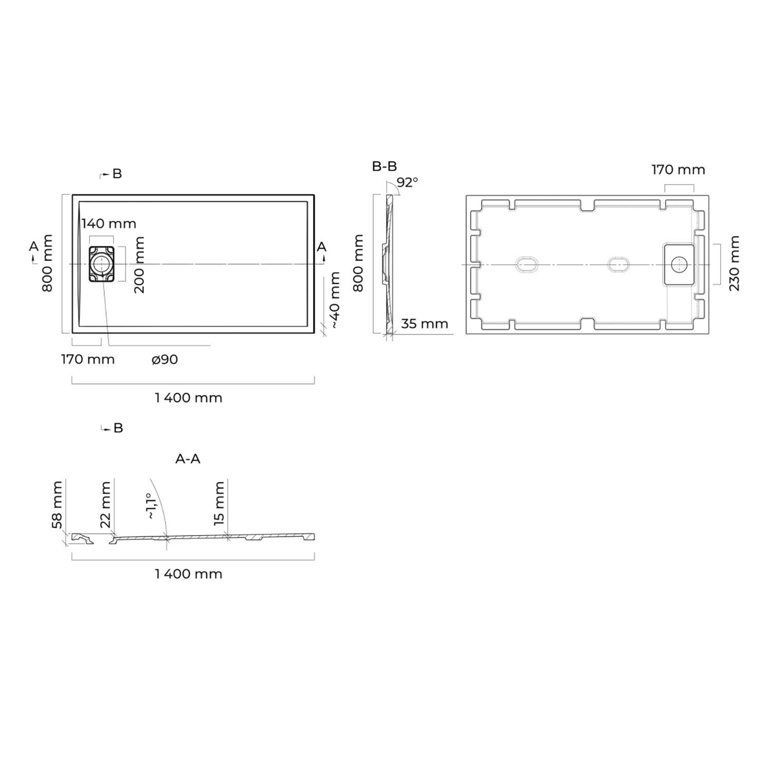 OLTENS Bergytan Duschwanne RockSurface 80 x 140 cm