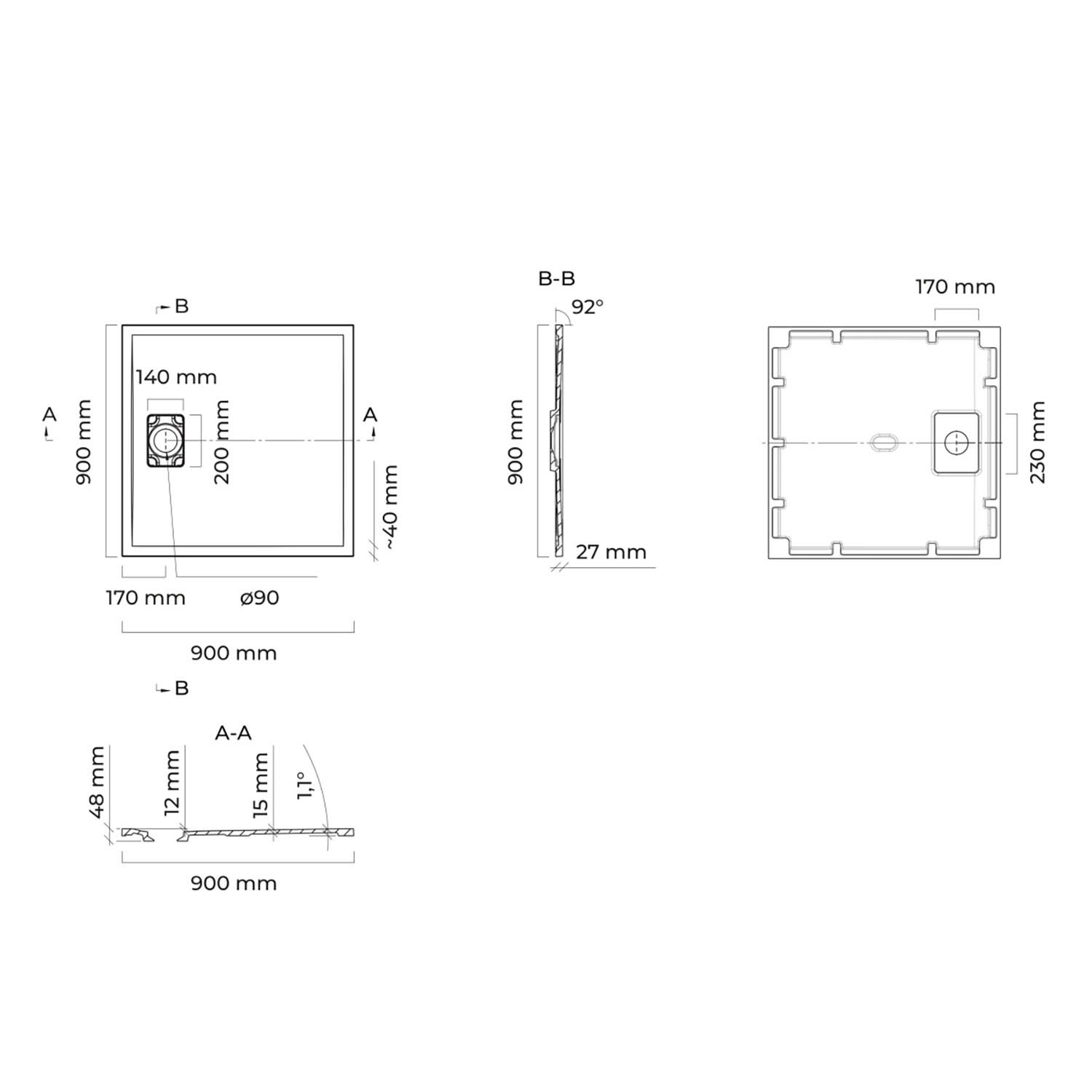 OLTENS Bergytan Duschwanne RockSurface 90 x 90 cm