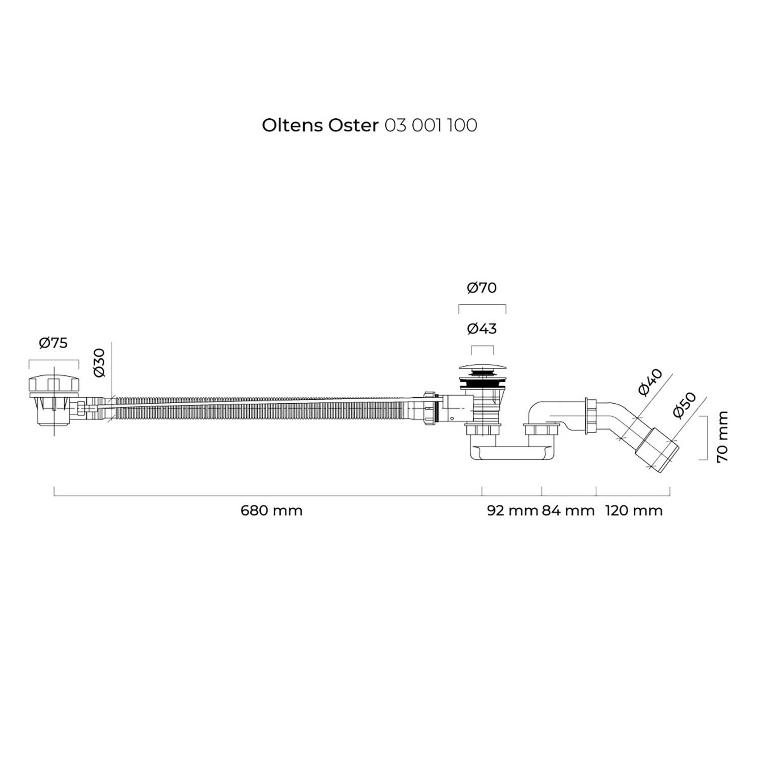 OLTENS Oster automatischer Badewannensiphon mit Drehknopf