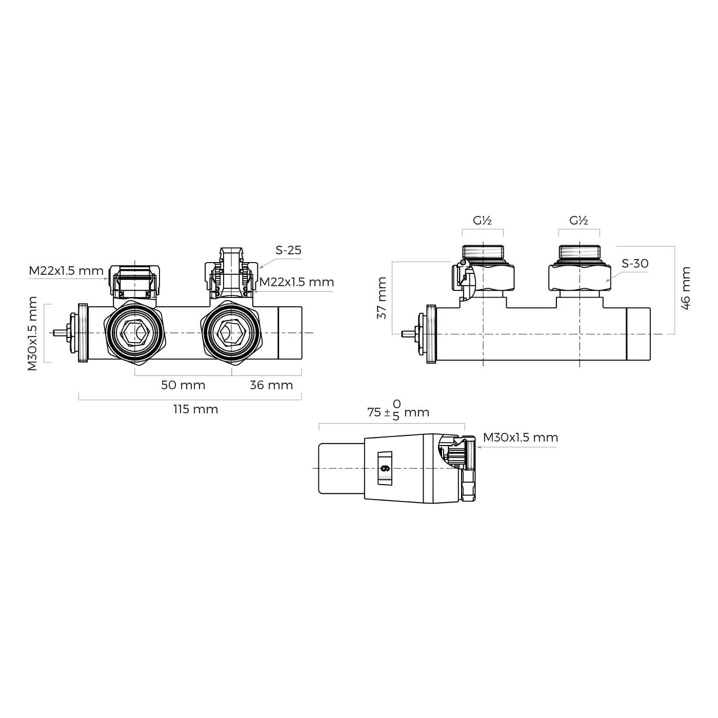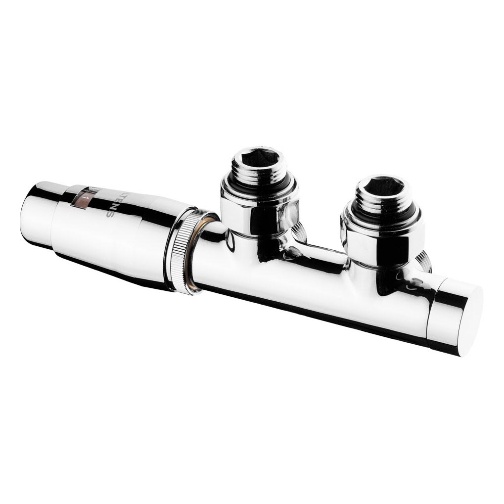 - besteht aus einem Anschlußblock mit eingebautem Thermostatventil, Absperrventil und Thermostatkopf