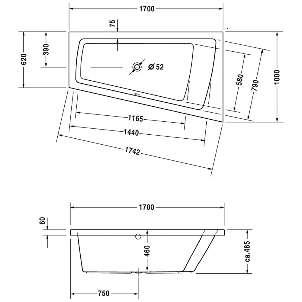 Duravit Paiova Eck-Badewanne 170 x 100 cm Ecke rechts