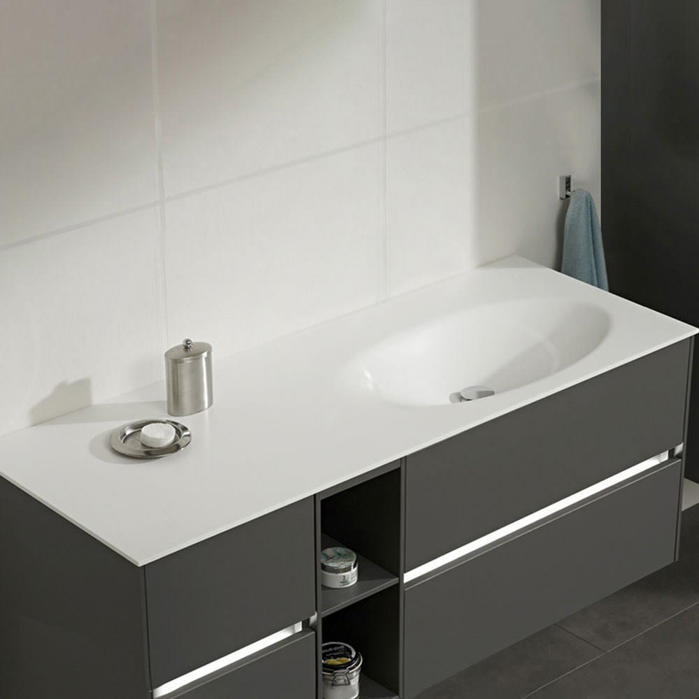 Pelipal Serie 6010 Krion-Waschtisch 113 cm, Becken rechts, ohne Hahnloch