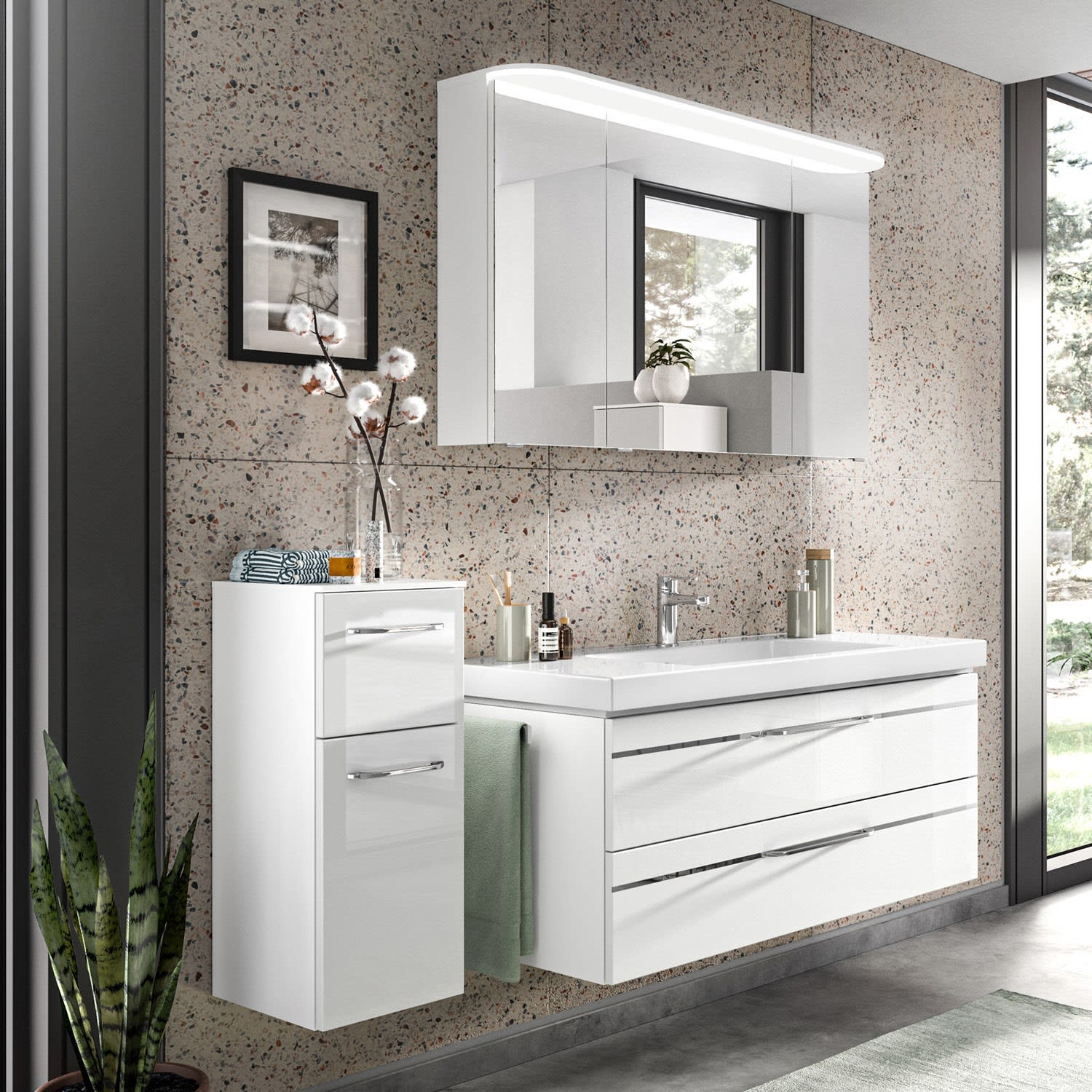 Pelipal Balto Badmöbel-Set 123,4 cm, inkl. Spiegelschrank und Highboard